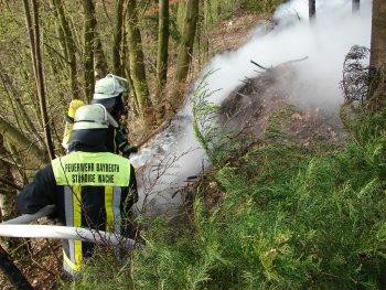 Gegen 7:50 wurden am 21.04.08 die Feuerwehren aus Bayreuth, Döhlau, Weidenberg und Sophienthal zu einem Böschungsbrand am Oschenberg gegenüber der Einfahrt Döhlau alarmiert. Da ein in direkter Nachbarschaft gelegener Flüssiggastank im Brandbereich lag, wurden vorsorglich die Wehren aus Bindlach und Untersteinach nachalarmiert. Die ca. 40 Feuerwehrkräfte hatten den Brand, der seinen Ursprung in einem Komposthaufen hatte, schnell im Griff. Die Nachlöscharbeiten zogen sich allerdings in die Länge, da der Komposthaufen mit Dunggabeln auseinander gebracht werden musste. Zwei Anwohnerinnen erlitten bei dem, Versuch das Feuer selbst zu löschen, eine leichte Rauchvergiftung. Beide Personen wurden dem Bayerischen Roten Kreuz ( BRK ) zur weiteren Versorgung übergeben. Neben den eingesetzten Rettungskräften waren KBR Hermann Schreck, KBI Hans-Rainer Birkner und KBM Konrad Bauer sowie die Polizei vor Ort, letztere nahm die Ermittlungen zur Brandursache auf.