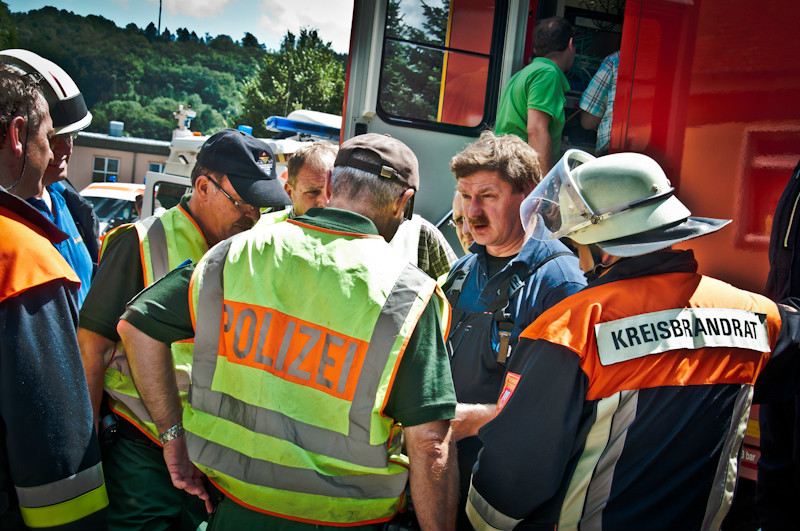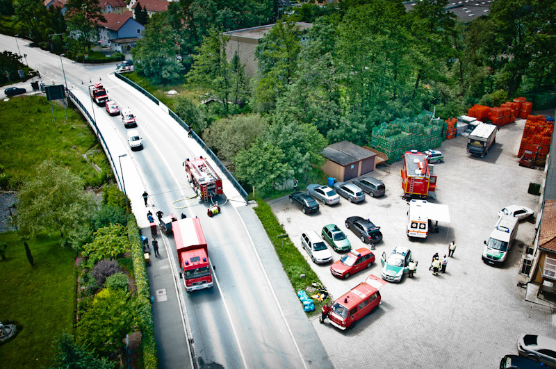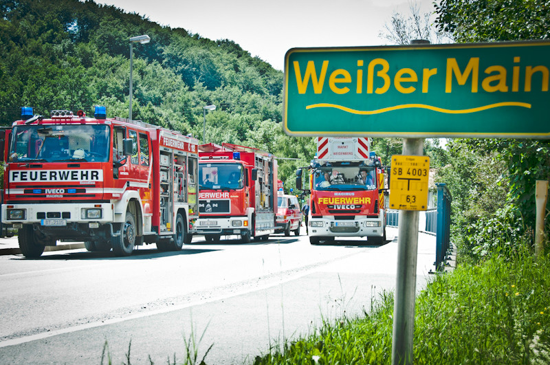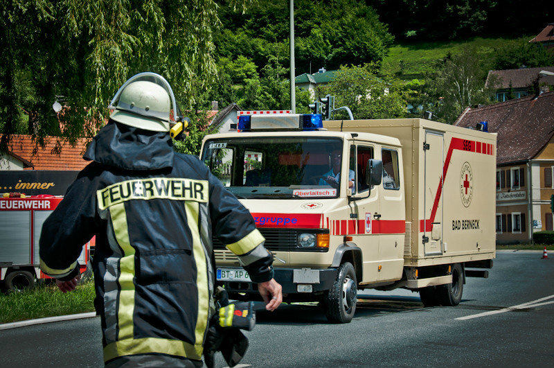 Nachdem die Feuerwehr Bad Berneck bei einer ersten Erkundung der Lage festgestellt hatte, dass sich aus einem dortigen Gully ein stechender, atemwegsreizender Geruch und eine unklare Rauchentwicklung ausbildete, wurden die Alarmstufe für die Feuerwehren auf 7 – Gefahrgut – erhöht. Die Einsatzstelle wurde sofort großräumig abgesichert, mit der Folge, dass auch die B 303 bzw. die B 2 für den Verkehr lokal durch die Polizei gesperrt werden mussten.