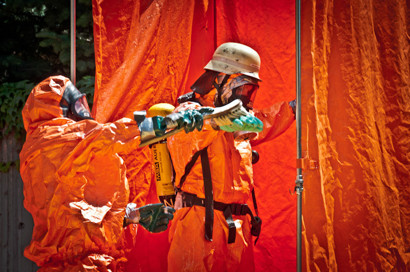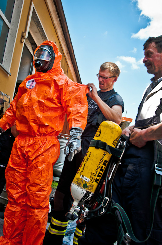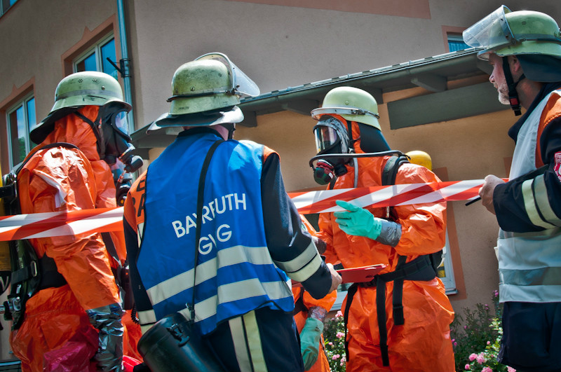 Unter Schutzanzügen der sogenannten Form 2 nahmen mehrere Atemschutzgeräteträger entsprechende Messungen in dem betroffenen Bereich vor. Rund um die angebundene Kanalisation wurden Druckbelüfter in Stellung gebracht, um unter Wasserbeaufschlagung eine Entlüftung zu erreichen. Dem Einsatzleiter Wolfgang Maisel, Kommandant der Feuerwehr Bad Berneck, standen bei den mehrstündigen Maßnahmen Kreisbrandrat Hermann Schreck sowie die Unterstützungsgruppe Örtliche Einsatzleitung (UG-ÖEL) zur Seite. Zur Sicherung der medizinischen Versorgung war das Bayerische Rote Kreuz mit insgesamt 35 Kräften vor Ort. Die einsatztaktisch zunächst sicherheitshalber erwogene Maßnahme einer Räumung des Seniorenheimes wurde nicht erforderlich.