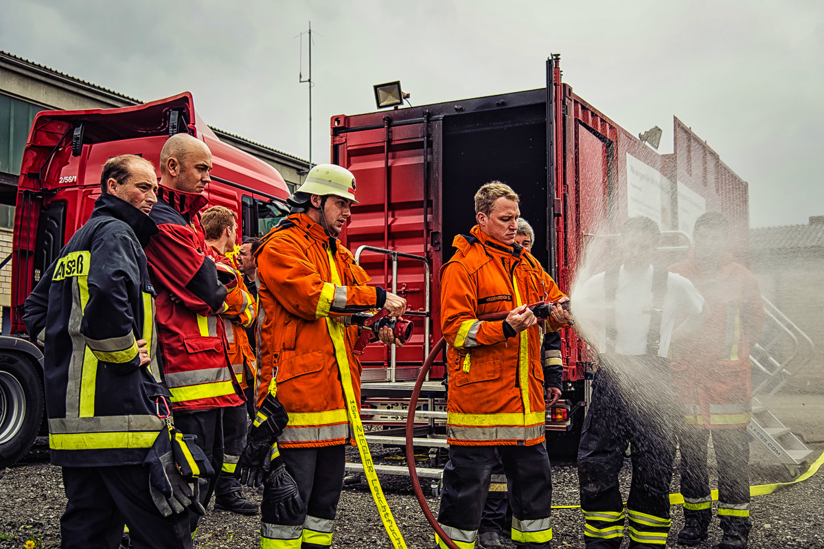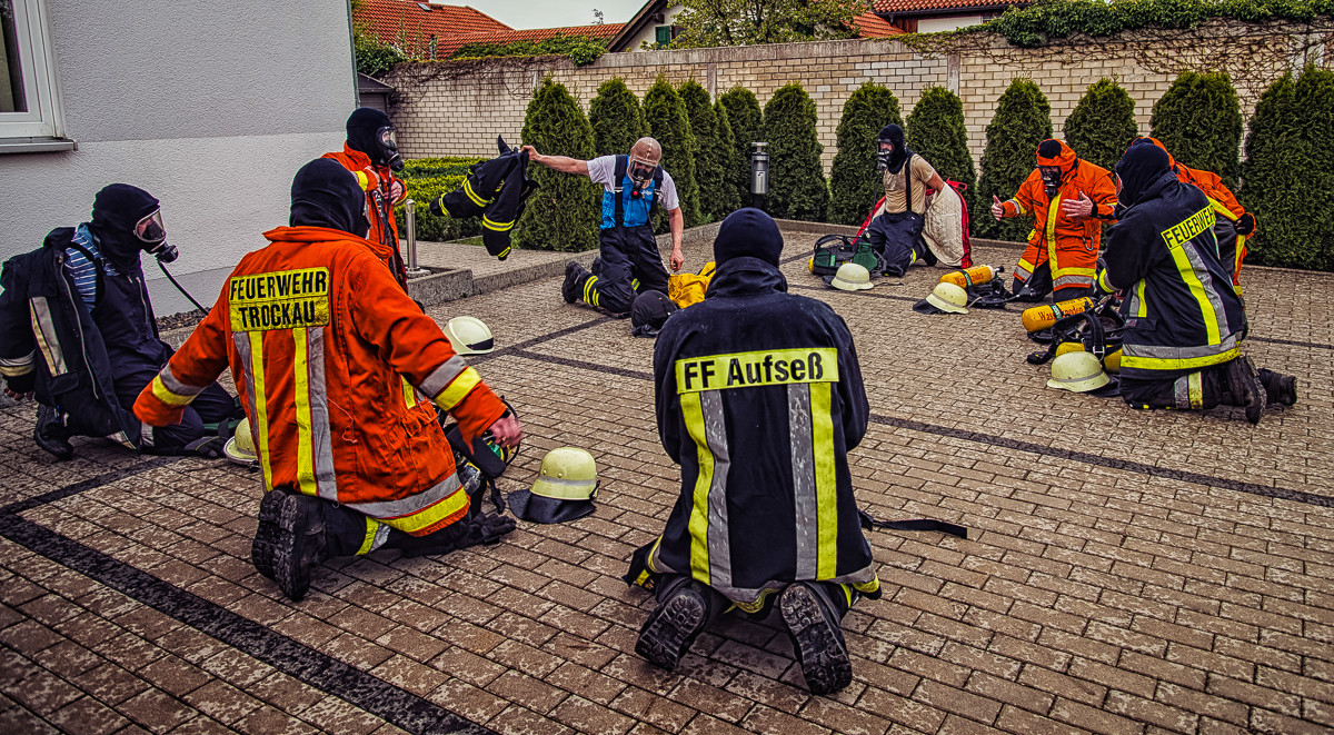 Da das Training in dem Brandübungscontainer nicht ungefährlich ist, erhielten die Teilnehmer eine detaillierte Sicherheitseinweisung. Zudem wurden bei jedem Teilnehmer der Zustand sowie der korrekten Sitz der persönlichen Schutzausrüstung geprüft.