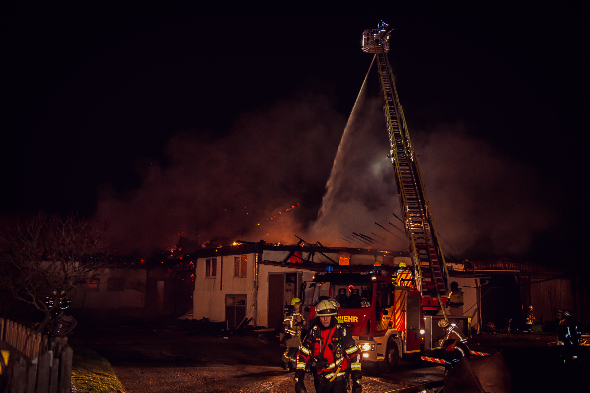 Ein Großbrand in dem Bindlacher Ortsteil Röthelbach forderte am späten Abend des 09. März 2017 über 230 Kräfte der Feuerwehr, des Rettungsdienstes, des Technischen Hilfswerks sowie der Polizei. Unter der Leitung von Kommandant Markus Strobel wurde schnellstens ein groß angelegter Löschangriff aus allen vier Himmelsrichtungen um das betroffene Objekt vorgenommen. Insgesamt sieben lange Schlauchstrecken wurden in dem personal- und materialintensiven Einsatz verlegt, um eine belastbare Wasserversorgung sicherzustellen. Ein Übergreifen des Feuers auf nahegelegene Häuser konnte so verhindert werden. Neben zahlreichen Feuerwehrführungskräften waren die Unterstützungsgruppe Örtliche Einsatzleitung sowie Wehren aus dem gesamten Bindlacher Gemeindegebiet, Bad Berneck, Gefrees, Speichersdorf, Weidenberg sowie der Stadt Bayreuth vor Ort. Wie das Polizeipräsidium Bayreuth noch in der Nacht mitteilte, verendete leider eine Vielzahl an Schweinen. Die Nachlöscharbeiten werden sich noch weit in die Morgenstunden hinziehen.