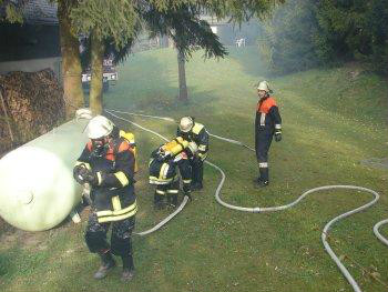 Gegen 7:50 wurden am 21.04.08 die Feuerwehren aus Bayreuth, Döhlau, Weidenberg und Sophienthal zu einem Böschungsbrand am Oschenberg gegenüber der Einfahrt Döhlau alarmiert. Da ein in direkter Nachbarschaft gelegener Flüssiggastank im Brandbereich lag, wurden vorsorglich die Wehren aus Bindlach und Untersteinach nachalarmiert. Die ca. 40 Feuerwehrkräfte hatten den Brand, der seinen Ursprung in einem Komposthaufen hatte, schnell im Griff. Die Nachlöscharbeiten zogen sich allerdings in die Länge, da der Komposthaufen mit Dunggabeln auseinander gebracht werden musste. Zwei Anwohnerinnen erlitten bei dem, Versuch das Feuer selbst zu löschen, eine leichte Rauchvergiftung. Beide Personen wurden dem Bayerischen Roten Kreuz ( BRK ) zur weiteren Versorgung übergeben. Neben den eingesetzten Rettungskräften waren KBR Hermann Schreck, KBI Hans-Rainer Birkner und KBM Konrad Bauer sowie die Polizei vor Ort, letztere nahm die Ermittlungen zur Brandursache auf.