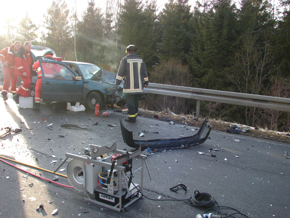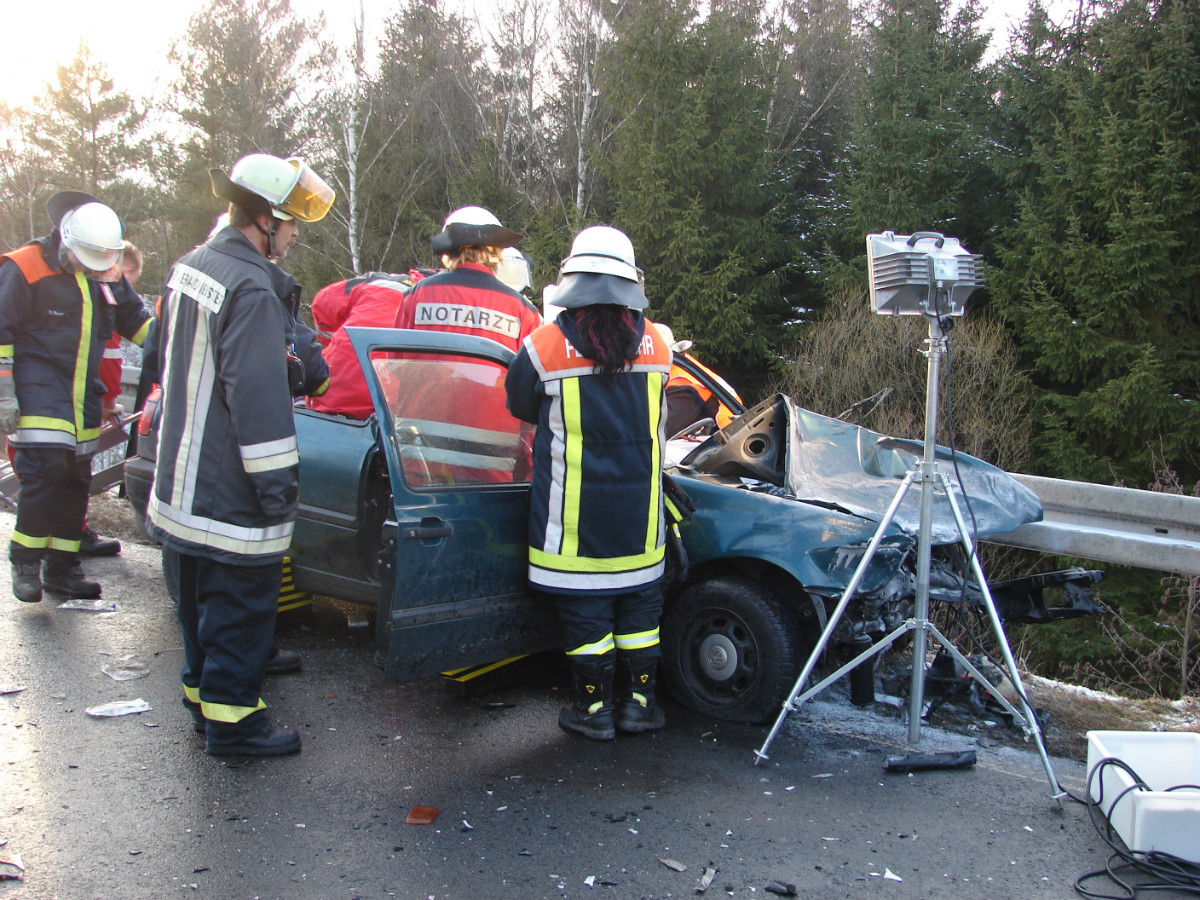Zu einem schweren Verkehrsunfall kam es am 16.01.2009 gegen 15:15 Uhr auf der B2 in Höhe der Abzweigung Gottsfeld. Ein 46-jähriger Autofahrer aus dem Landkreis Bayreuth befuhr die Straße Richtung Pegnitz, als vor ihm ein anderer Verkehrsteilnehmer rechts in die Abzweigung Gottsfeld/Neumühle abbiegen wollte, setzte er zum Überholen an. Hierbei übersah er einen entgegenkommenden LKW aus dem Landkreis Greiz. Ein Frontalzusammenstoß war die unausweichliche Folge. Hierbei wurde der Golffahrer in seinem Fahrzeug eingeklemmt und schwerstverletzt. Zudem begann das Fahrzeug zu brennen. Mehrere sofort zur Hilfe eilende PKW-Fahrer, darunter ein Feuerwehrmann, konnten den Brand bis zum Eintreffen der Feuerwehr mit Feuerlöschern bekämpfen.