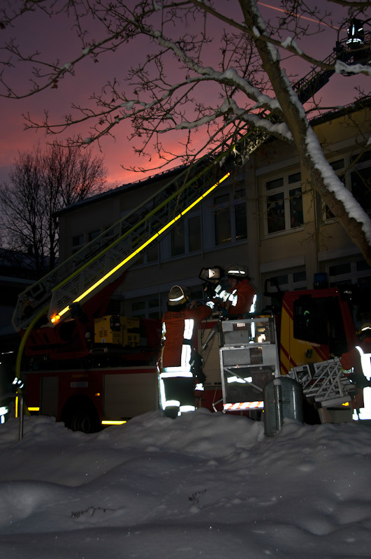 Auch am Folgetag sind die Feuerwehren Heinersreuth, Altenplos, Cottenbach, Unterwaiz und Weidenberg wieder in Heinersreuth im Einsatz, um die Dächer des örtlichen Kindergartens und der Schule von den derzeitigen Schneemassen zu entlasten. Die rund 50 eingesetzten Kräfte koordinieren der stellvertretende Kommandant Michael Hader und Kreisbrandmeister Konrad Bauer.