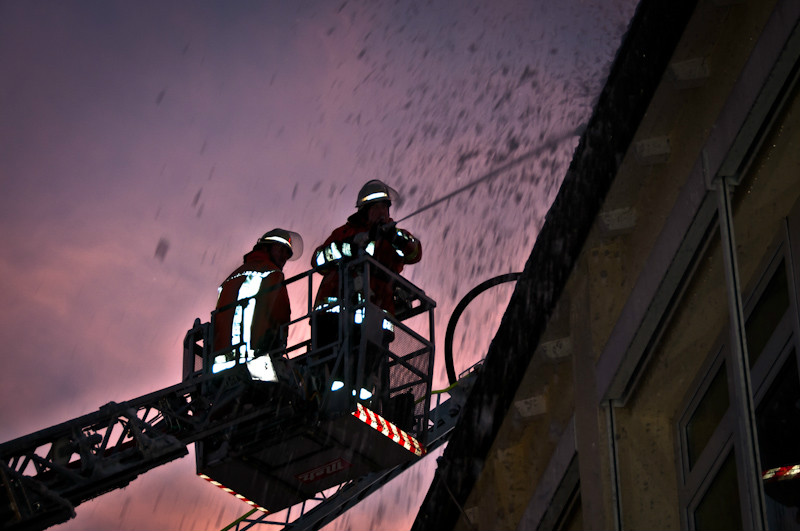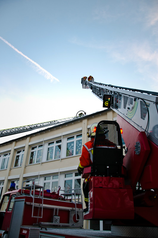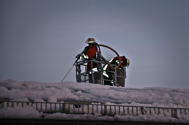 Parallel hierzu wird in Bad Berneck das Dach eines Einkaufsmarktes durch die Wehren Bad Berneck, Escherlich und Gefrees geräumt.