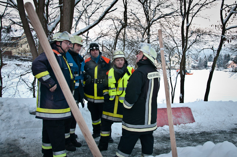 Auch am Folgetag sind die Feuerwehren Heinersreuth, Altenplos, Cottenbach, Unterwaiz und Weidenberg wieder in Heinersreuth im Einsatz, um die Dächer des örtlichen Kindergartens und der Schule von den derzeitigen Schneemassen zu entlasten. Die rund 50 eingesetzten Kräfte koordinieren der stellvertretende Kommandant Michael Hader und Kreisbrandmeister Konrad Bauer.