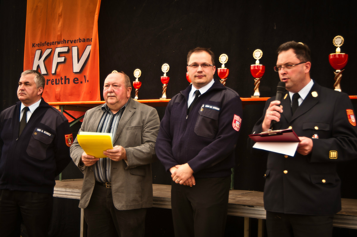 Mit nahezu unglaublichen 800 von 800 möglichen Punkten konnten die Jugendfeuerwehrleute aus Sachsendorf nach einer spannungsgeladenen Auflistung der erreichten Ränge den Pokal für den ersten Platz in Empfang nehmen, ebenso wie den begehrten Wanderpokal der Inspektion II. Diese Mannschaft wird zudem eine von vier Wettbewerbsgruppen bilden, die den Landkreis Bayreuth auf oberfränkischer Ebene beim Bezirksjugendleistungsmarsch am 01.10.2011 in Bad Staffelstein vertreten wird.