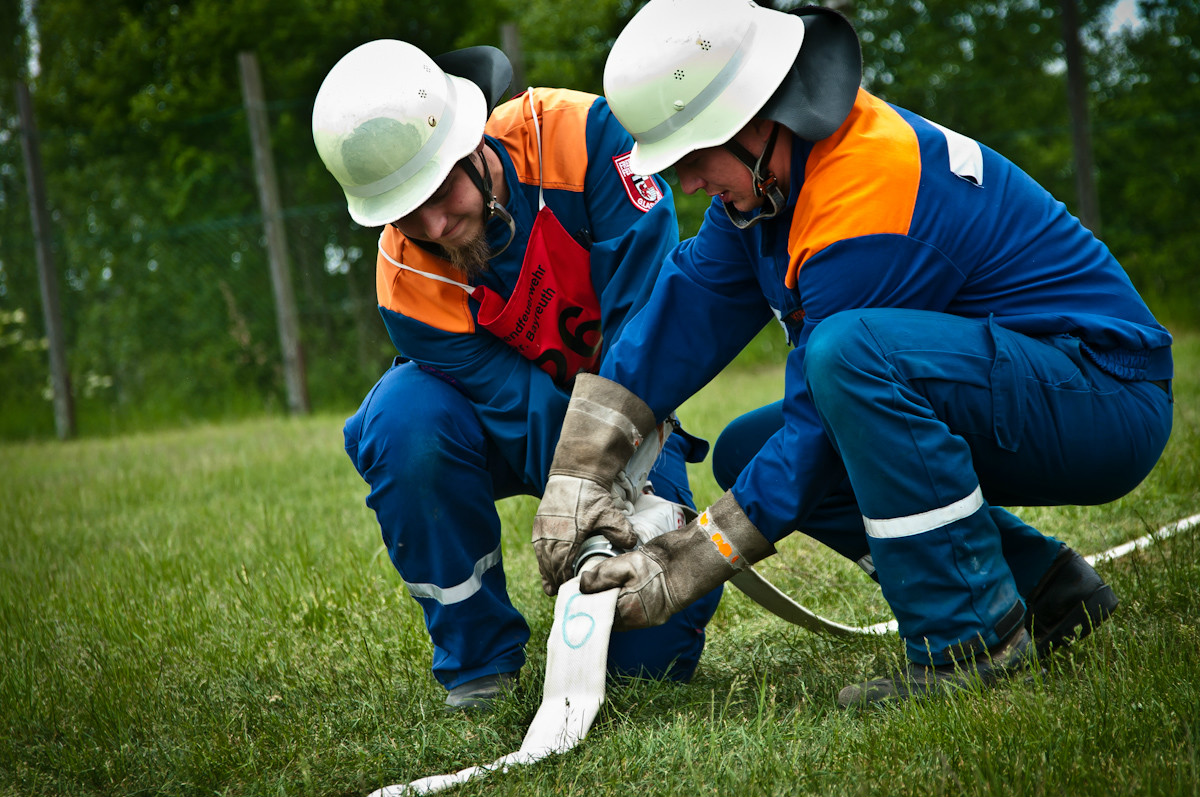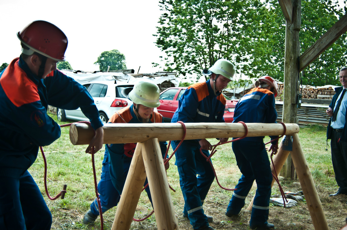 Sieben durchaus anspruchsvolle Übungen waren auf der rund 6 Kilometer langen und landschaftlich reizvollen Strecke zu absolvieren. Hierzu zählten das Anfertigen eines Brustbundes, der Transport einer Feuerwehraxt sowie eines C-Schlauches über einen Graben, Verhalten bei Notfällen, Zusammenkuppeln einer 90-Meter-C-Leitung, Knoten und Stiche, ein theoretischer Test sowie das Erkennen und Zuordnen von wasserführenden Armaturen, Kupplungen und Zubehör. Hinzu kam eine Start- und Zielkontrolle, die ebenso in die Bewertung fiel wie das Auftreten der Gruppen.