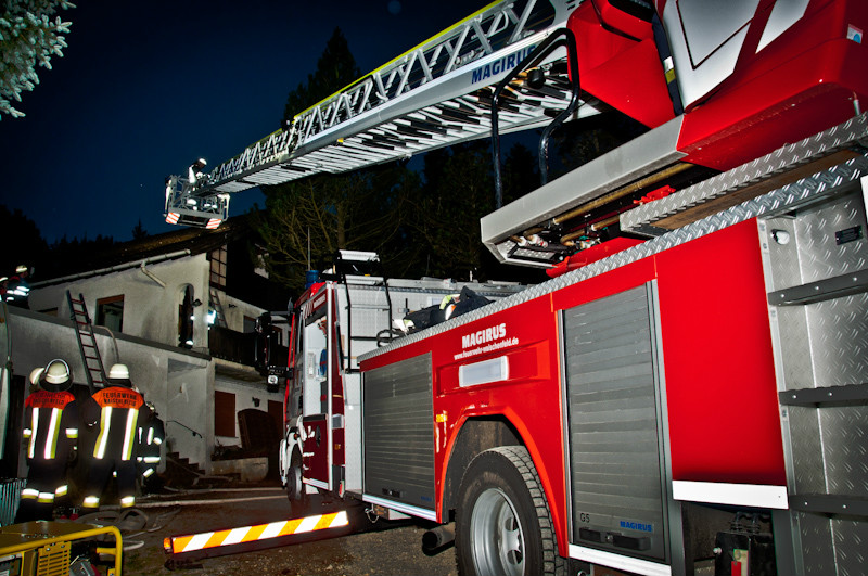 Da insbesondere die Isolierung des in Ständerbauweise gefertigten Hauses in Mitleidenschaft gezogen wurde, waren zeitaufwendige Nachlöscharbeiten und Kontrollen mit der Wärmebildkamera erforderlich. Mit der Drehleiter der Feuerwehr Waischenfeld und einem sogenannten „Power Moon“ wurde die Einsatzstelle großflächig ausgeleuchtet. Gegen 21 Uhr konnte sodann „Feuer aus“ gemeldet werden. Die Einsatzleitung inne hatten die Kommandanten Alexander Kaiser und Roland Huppmann mit Unterstützung durch Kreisbrandmeister Reiner Marks sowie Kreisbrandrat Hermann Schreck. Der ebenfalls alarmierte Malteser Hilfsdienst Waischenfeld sicherte die medizinische Versorgung; Verletzte waren nicht zu verzeichnen.