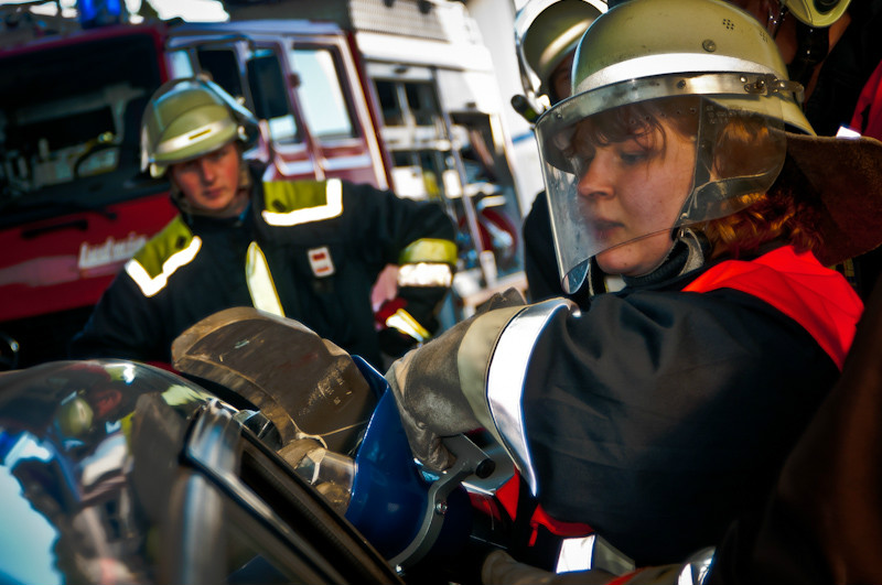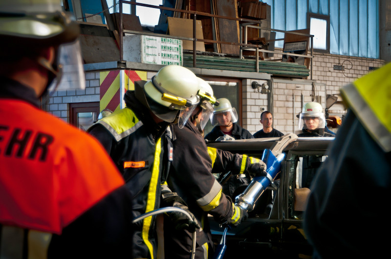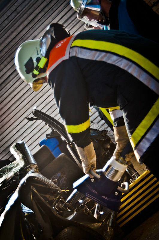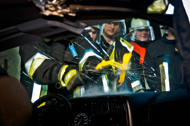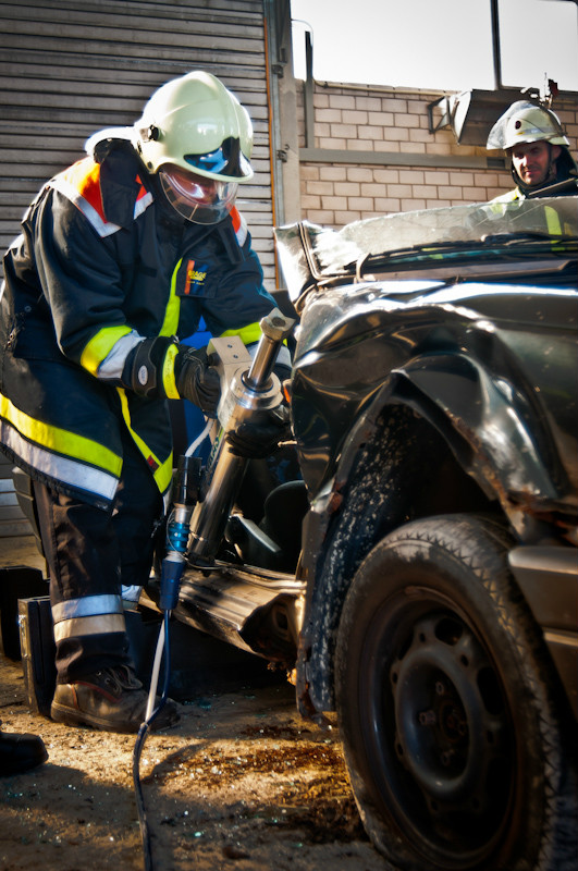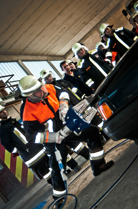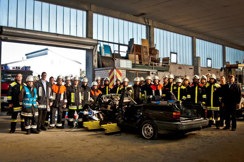 Am Vormittag beschäftigten sich die Teilnehmer in einem theoretischen Teil hauptsächlich mit den verschiedenen gängigen Rettungsgeräten, deren Einsatzmöglichkeiten, aber auch dem damit einhergehenden Gefahrenpotential, wie es zum Beispiel bei einen nicht ausgelösten Airbag besteht.