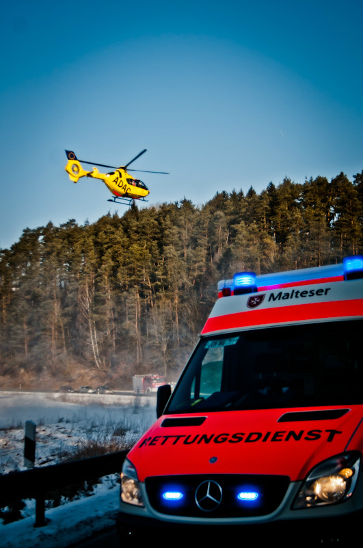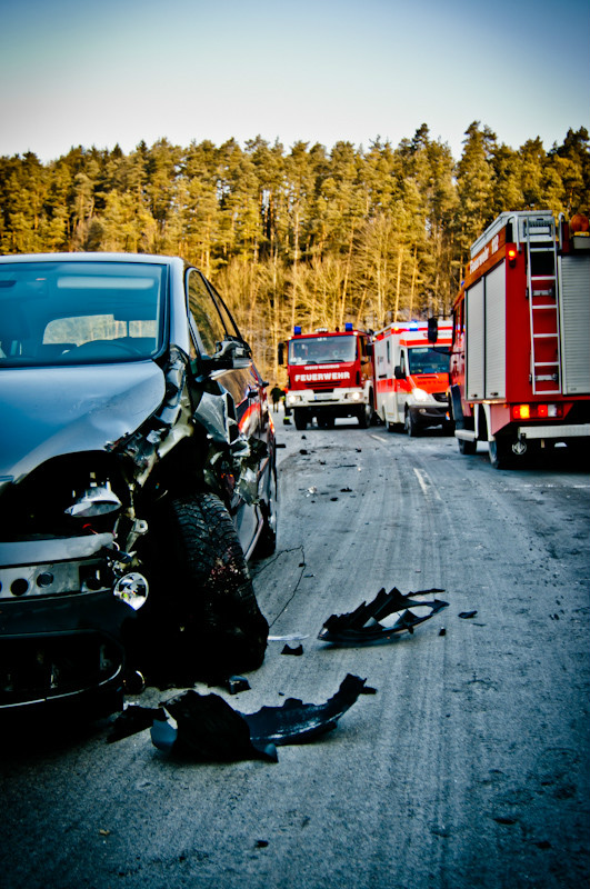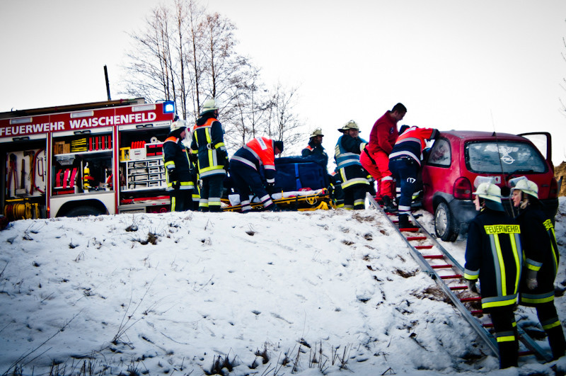 Noch während dieser beiden Einsätze dann ein erneuter Alarm: zwischen Waischenfeld und Plankenfels hatte sich ein schwerer Verkehrsunfall ereignet, bei dem eine Person in einem PKW eingeklemmt wurde, der abzustürzen drohte. Für die Helfer der Freiwilligen Feuerwehr der nächste schwere Einsatz bei eisigen Temperaturen. Das Fahrzeug konnte gesichert, der Verunfallte aus dem PKW befreit und dem Rettungsdienst übergeben werden. Nähere Einzelheiten zum Unfall und dessen Ursache, bei dem weitere Fahrzeuge beteiligt waren, stehen bisher noch nicht fest.