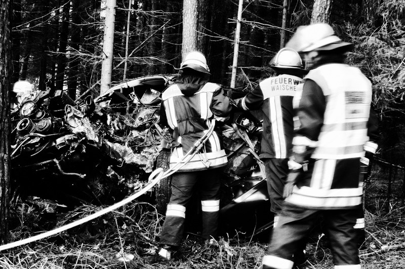 Aus bisher noch unklaren Gründen war der Fahrer eines BMW bei Dörnhof von der Staatsstraße 2188 abgekommen. Das Fahrzeug prallte daraufhin frontal in ein Waldstück und wurde dabei völlig demoliert. Der schwerst eingeklemmte Fahrer verstarb an der Unfallstelle. Unter der Leitung von Kreisbrandinspektor Armin Meyer bargen die Feuerwehrleute den Verunglückten mit hydraulischem Rettungsgerät aus dem Wrack. Vor Ort waren rund 50 Einsatzkräfte von Feuerwehr, Polizei, BRK, der Malteser Hilfsdienst Waischenfeld, der HvO Aufseß sowie der Rettungshubschrauber Christoph 20. Für die Dauer der Einsatzmaßnahmen wurde der Verkehr örtlich umgeleitet.