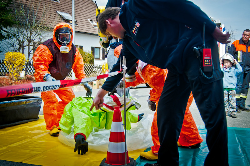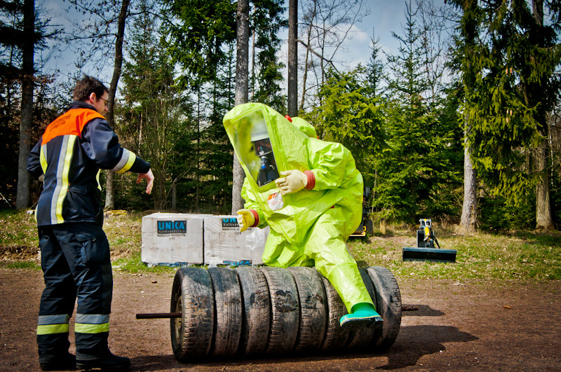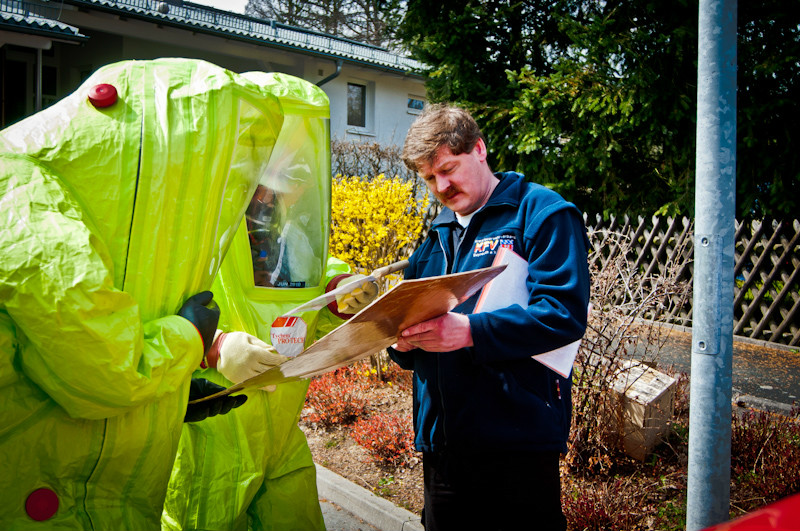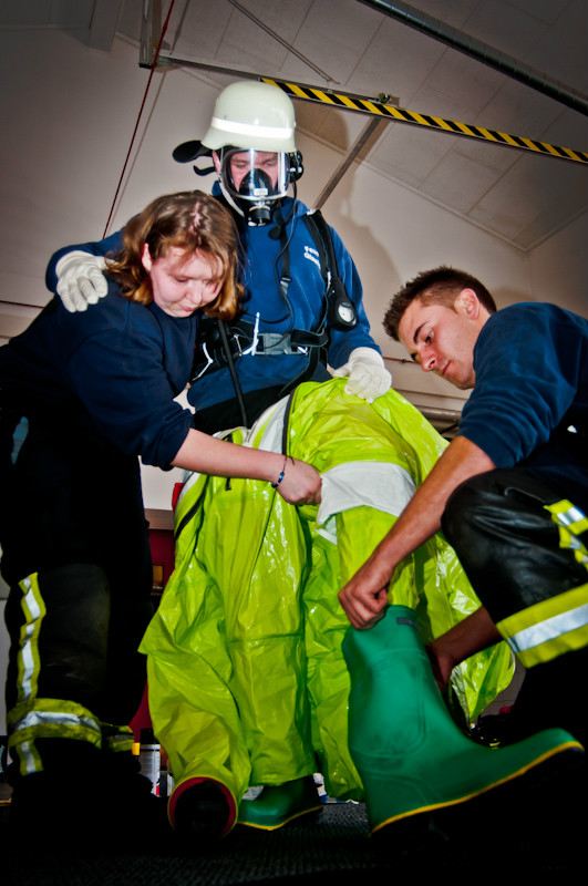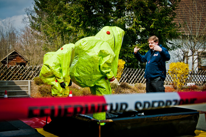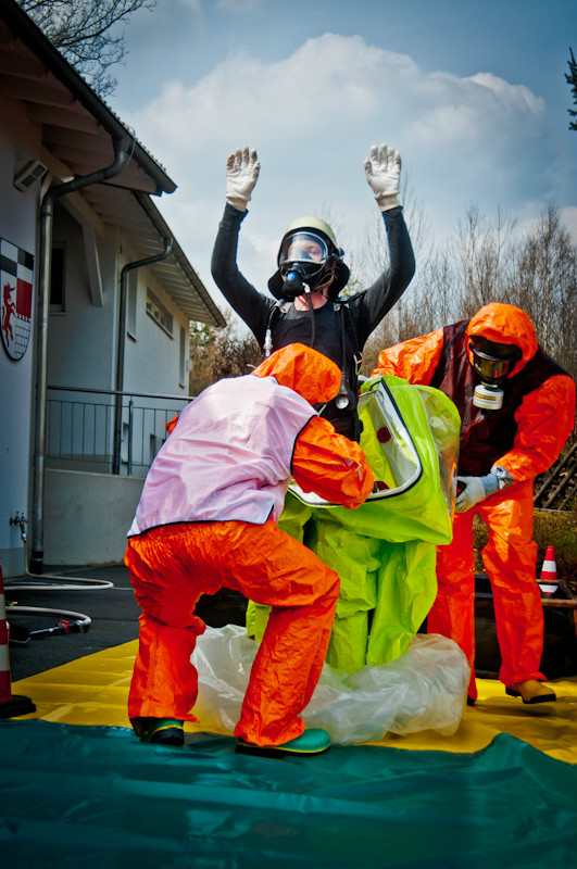 Der zwei Abendschulungen und einen Praxissamstag umfassende Lehrgang beinhaltet die Vermittlung von Kenntnissen hinsichtlich Bedeutung, Schutzfunktion und Einsatzgrundsätzen der Chemieschutzausrüstung. Dieses zunächst theoretisch behandelte Wissen wurde anhand zahlreicher praktischer Fallgestaltungen aus dem reichhaltigen Fundus des Fachausbilders für Gefahrgut näher verdeutlicht. Besonderer Wert wurde dabei insgesamt auf das korrekte An- und Ablegen der Schutzkleidung gelegt sowie auf eine geordnete Kommunikation mit der Übungsleitung.