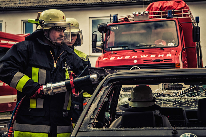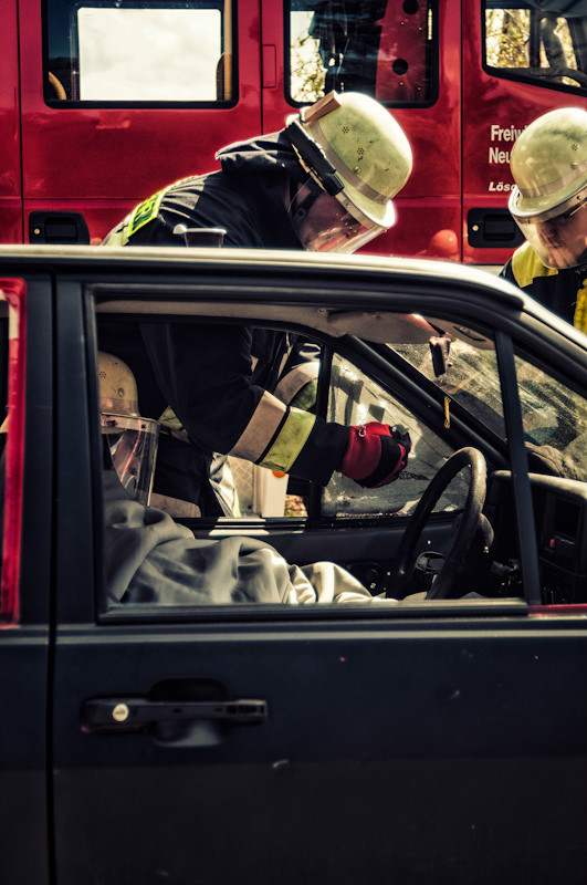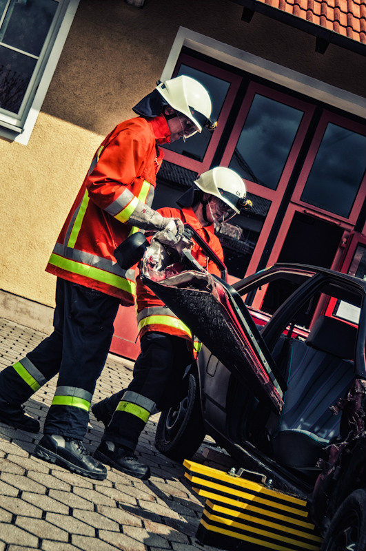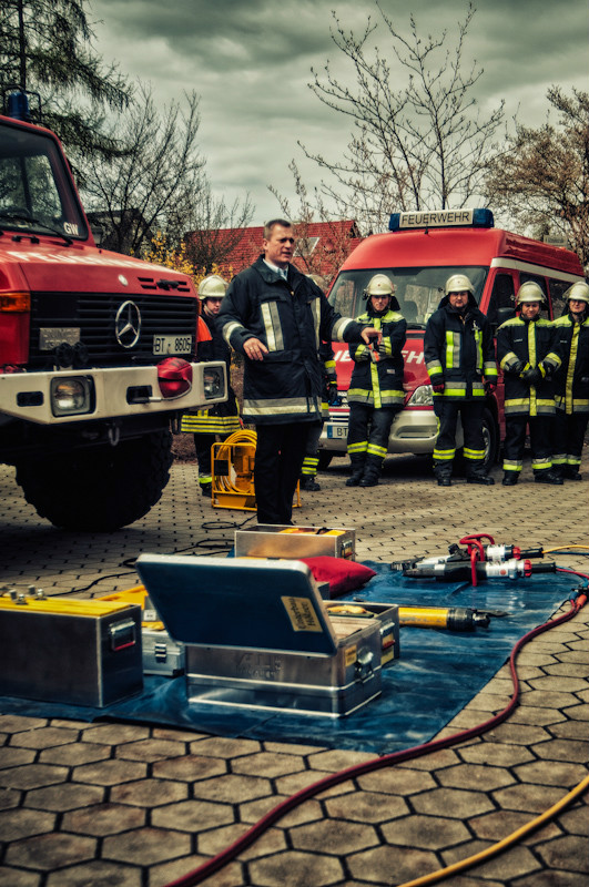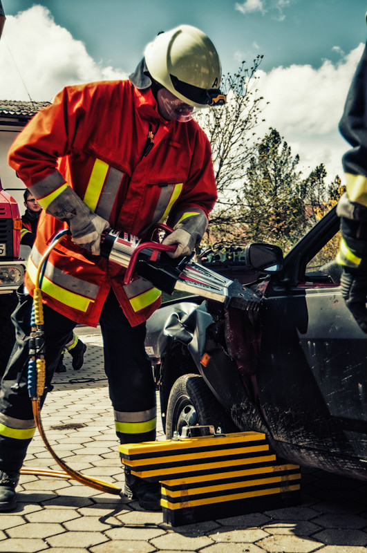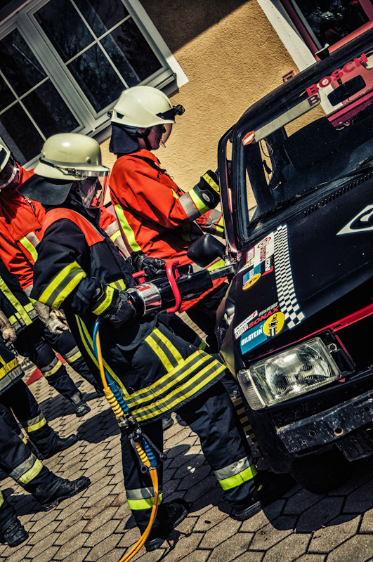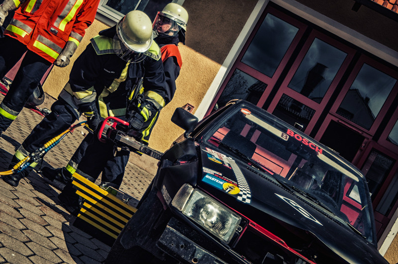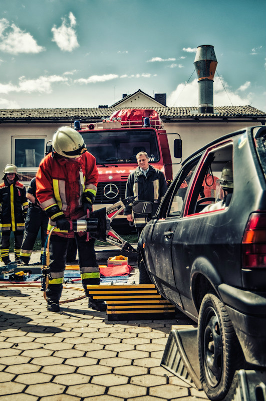 Nach der Wiederholung und Vertiefung der theoretischen Grundlagen am Vormittag wurde bei der praktischen Ausbildung unter Beachtung der erlernten Grundsätze ein Fahrzeug Stück für Stück auseinandergenommen. Hierbei hatten die Teilnehmer vor allem Gelegenheit, sich in aller Ruhe und ohne dem im Realeinsatz zumeist herrschenden Zeitdruck ausführlich mit verschiedenen Gerätschaften, taktischen Aspekten und möglichen Lösungswegen zu beschäftigen.
