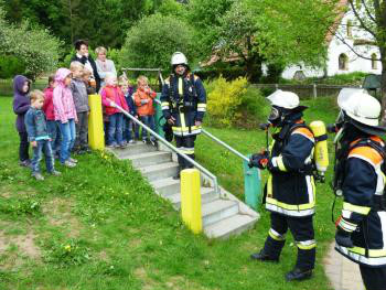 Verhalten bei Rauch und Feuer, Absetzen eines Notrufs und das Kennenlernen der vielfältigen Aufgaben und Geräte der Feuerwehr waren und sind Schwerpunkte der Brandschutzerziehung.