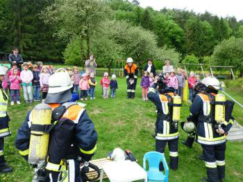 Ein Dankeschön ging an die Feuerwehrleute, die sich an diesem Tag die Zeit genommen hatten, um an der Übung teilzunehmen. Ein weiterer Dank gilt auch dem Elternbeirat des Kita Plech, er lud die Feuerwehrkameraden im Anschluß zur Stärkung in die Kindertagesstätte Plech ein.