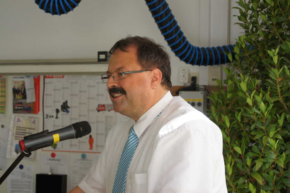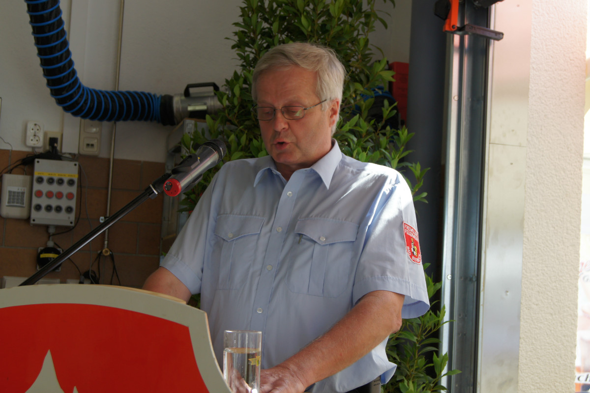 Kommandant Wolfgang Maisel erinnerte an die schwierige Zeit nach der Brandkatastrophe. Unzählige Stunden hatten er und seine Mannschaft an dem Wiedereinzug und der Konzeption für die neuen Fahrzeuge gearbeitet – oftmals bis an die Grenzen der Belastbarkeit. Der Applaus der Gäste für Maisels Ausführungen zeigte die Hochachtung besonders für sein unermüdliches Engagement.