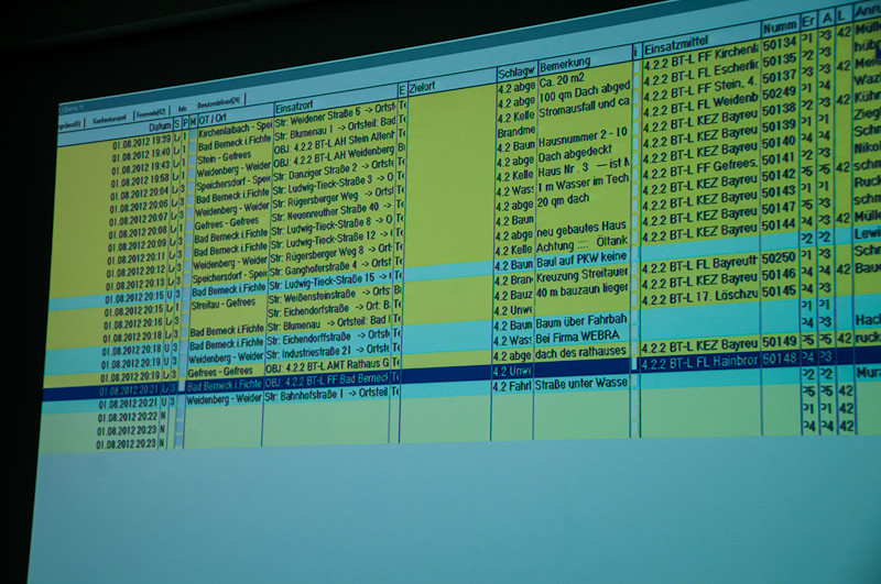 Ein simuliertes Unwetter, das am Abend des 01. August 2012 mitsamt einer Gewitterfront und Starkregen über dem nördlichen und östlichen Landkreis Bayreuth wüten sollte, bildete die Ausgangssituation für eine gemeinsame Übung der Leitstelle Bayreuth, der Unterstützungsgruppe Örtliche Einsatzleitung der Feuerwehr des Landkreises Bayreuth (UG-ÖEL) sowie der Unterstützungsgruppe der Leitstelle Bayreuth (UG-ILS).