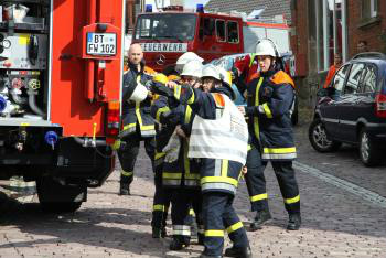 Die enge Bebauung des alten Ortskerns stellt im Ernstfall eine erhebliche Herausforderung dar, um bei einem Brand ein Übergreifen der Flammen auf die nahe stehenden Wohnhäuser zu verhindern.