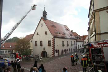 Das alte Rathaus, inmitten des historischen Creußener Stadtkerns, war das Übungsobjekt für die Inspektion 4 anlässlich der diesjährigen Feuerwehraktionswoche.