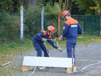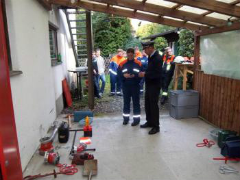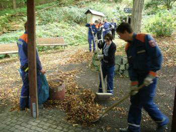 Nach einem gemeinsamen Mittagessen mussten die Teilnehmer der Stufe 3 noch ein Gemeinschaftsprojekt abarbeiten, in dem Fall eine Säuberungsaktion im Bereich des Gerätehauses und der Rettungswache.