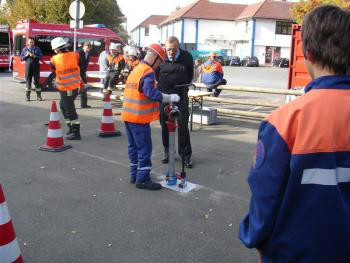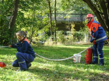 Nach einem gemeinsamen Mittagessen mussten die Teilnehmer der Stufe 3 noch ein Gemeinschaftsprojekt abarbeiten, in dem Fall eine Säuberungsaktion im Bereich des Gerätehauses und der Rettungswache.