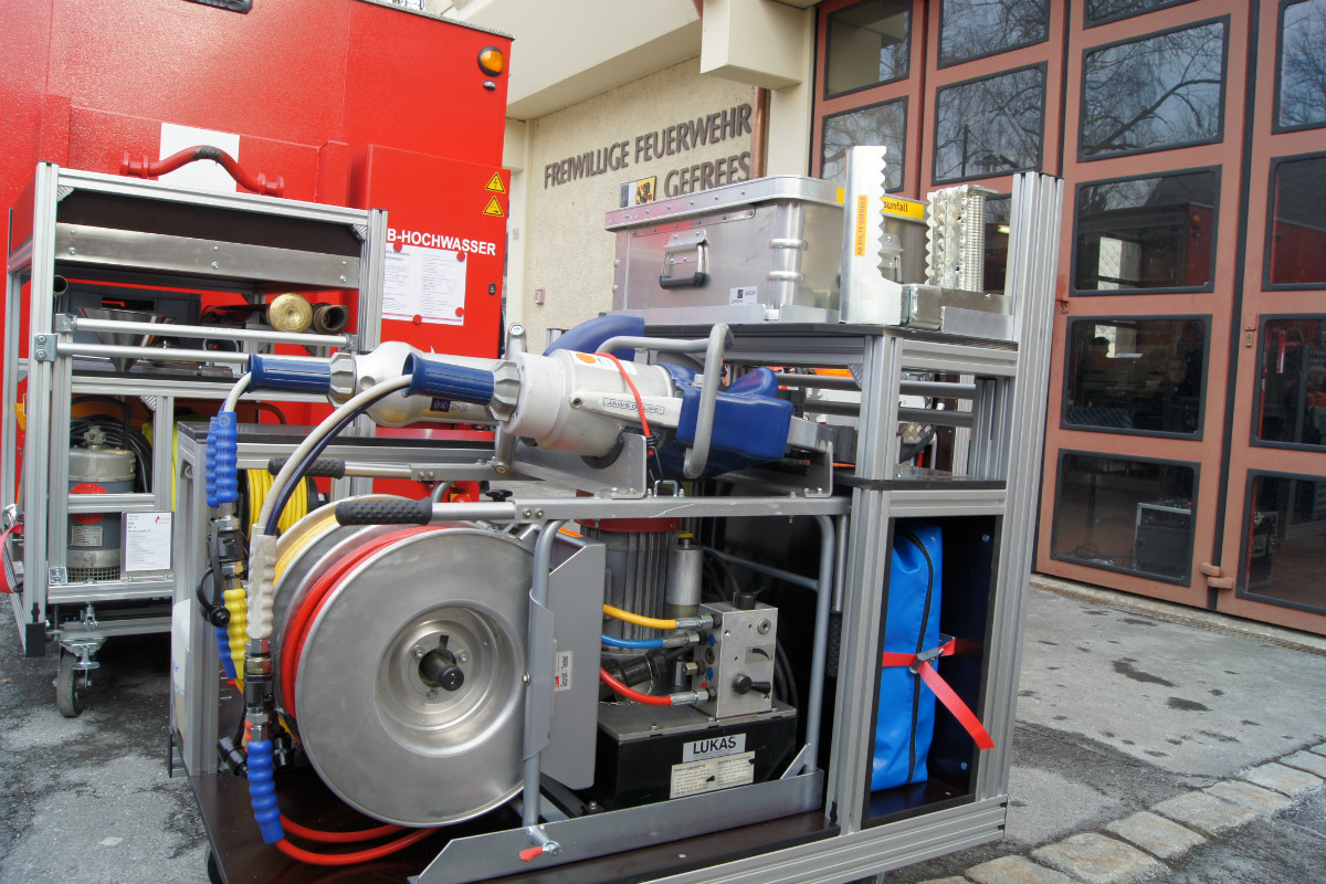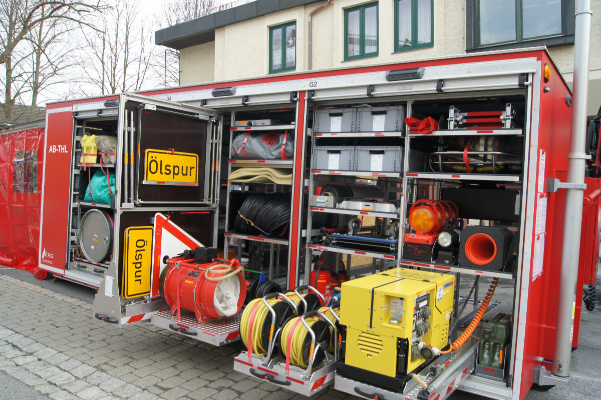 Dass hinter all dem ein enormer Aufwand an Ausbildung steckt, wird dem aufmerksamen Betrachter der vier Abrollbehälter in Gefrees schnell klar. Allein in einem Behälter befinden sich schon über 480 Einzelteile. Der Feuerwehrdienstleistende muss wissen, wo er was findet und es richtig einsetzen: eine fundierte Ausbildung ist die Grundlage für den späteren effektiven Einsatz. Pegnitz und Gefrees haben den entscheidenden Teil dieser Mammut-Aufgabe bereits gestemmt, weil dort mit den Trägerfahrzeugen und den vier Abrollbehältern die ersten beiden Standorte komplett ausgestattet sind. In Gefrees sind die Gerätschaften für die Bereiche „Technische Hilfeleistung“, „Hochwasser“, „Wasser“ und „Transportmulde“ stationiert.
