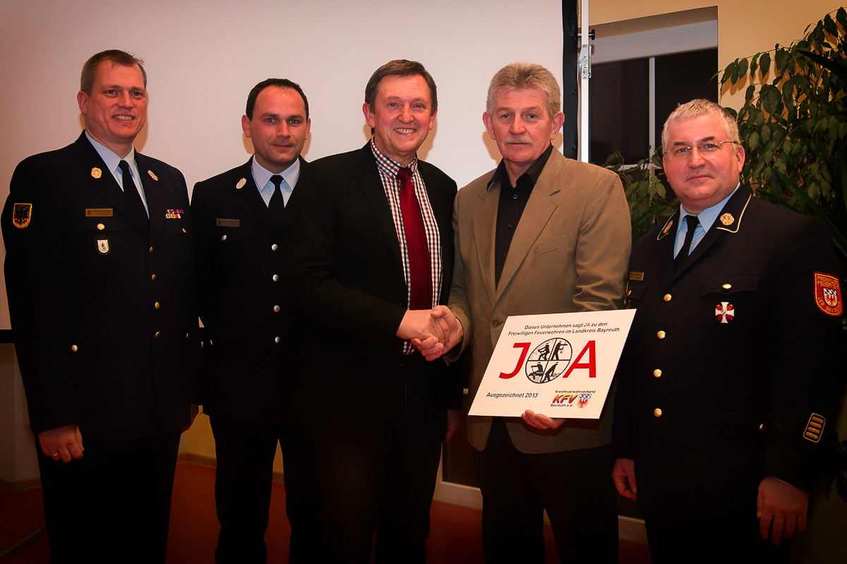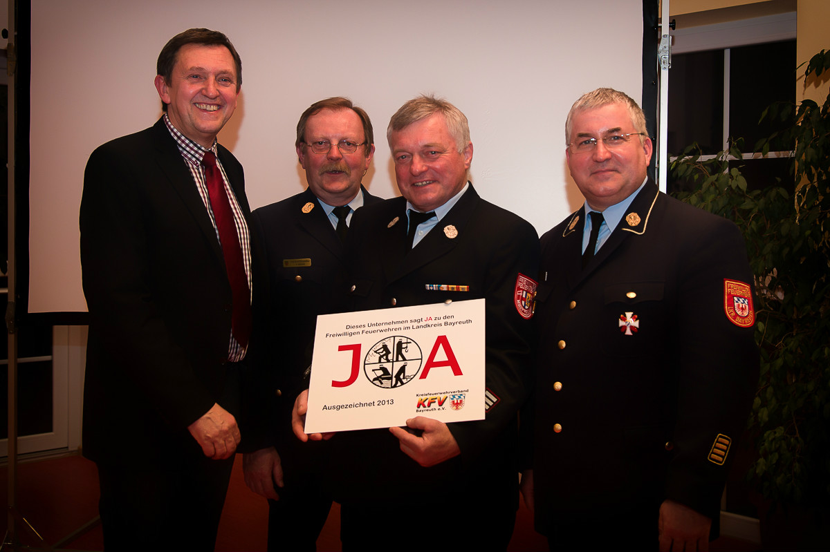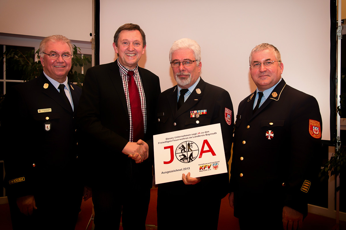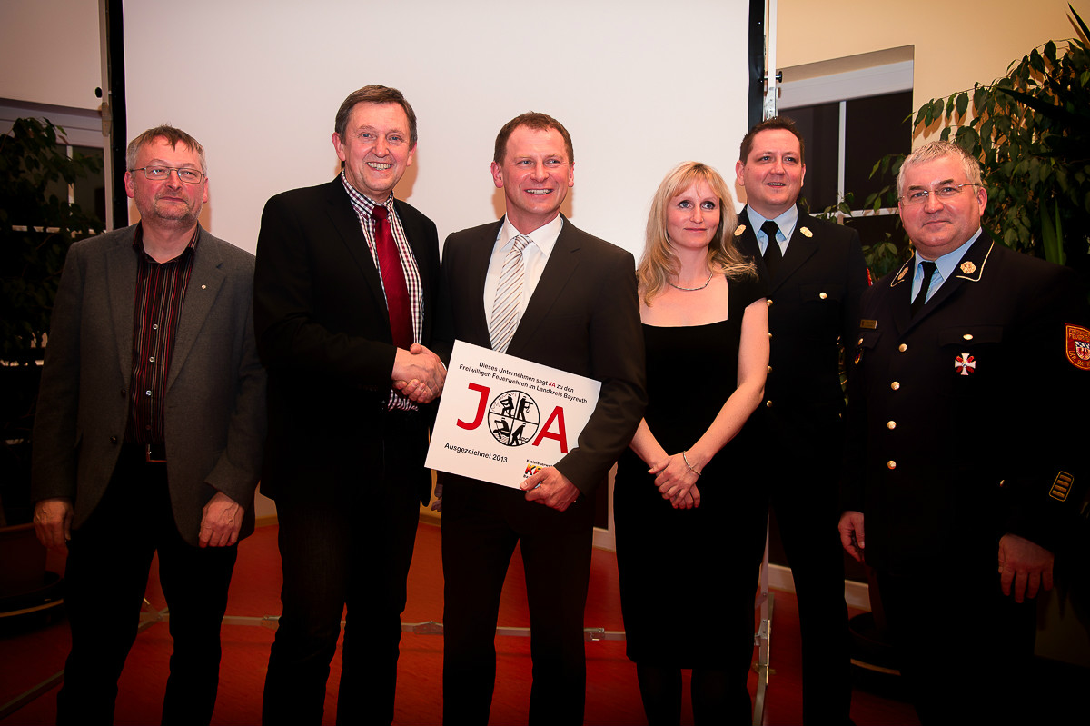 Den würdigen Rahmen der Jahresversammlung des Kreisfeuerwehrverbandes Bayreuth nutzte die Feuerwehrführung, gemeinsam mit Landrat Hermann Hübner Firmen auszuzeichnen, die in besonderem Maße die Freiwilligen Feuerwehren des Landkreises Bayreuth unterstützen.