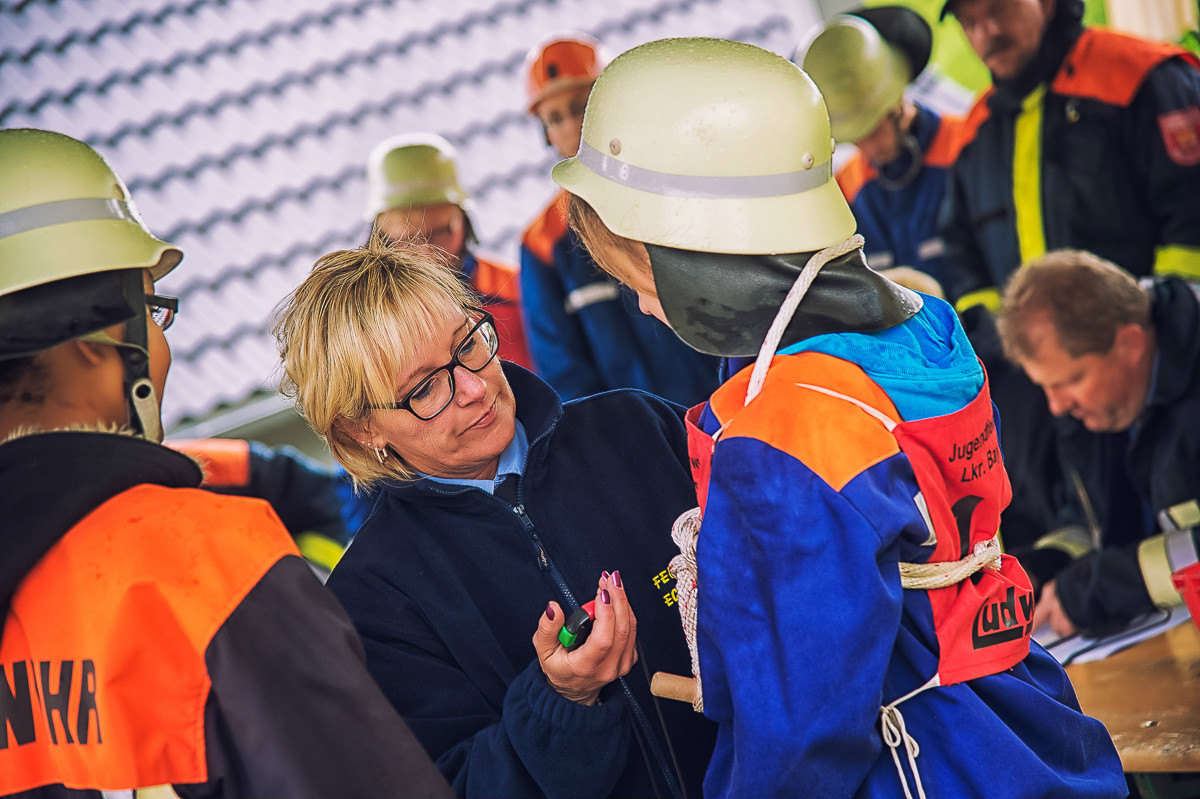 Schirmherrin Bürgermeisterin Sybille Pichl freute sich bei der abschließenden Siegerehrung zusammen mit Kreisbrandinspektor Armin Meyer, Kreisjugendfeuerwehrwart Stefan Steger und Kreisbrandmeister Daniel Ermer über durchweg ausgezeichnete Leistungen. Sie bescheinigte dem Feuerwehrnachwuchs nicht nur, fit in Theorie und Praxis zu sein, sondern vor allem, dass jeder Einzelne seine Feuerwehr an diesem Tag würdig vertreten hat. Die Jugendlichen und deren Ausbilder dürfen deswegen zu Recht stolz auf sich sein.