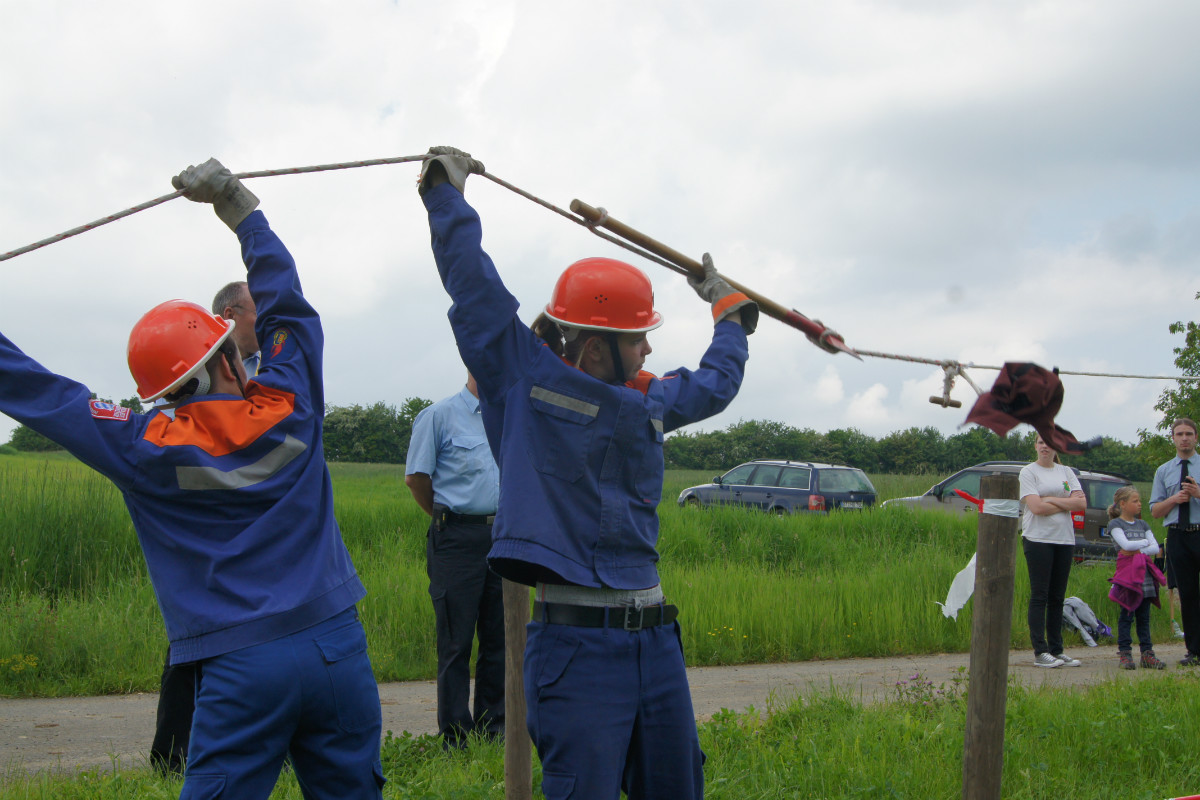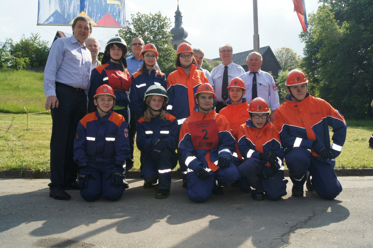 Was kann es für einen Gastgeber Schöneres geben, als wenn er selbst gebührend gefeiert wird? In Benk wurde dies nun zur fast schon unglaublichen Wirklichkeit – dies zuletzt nicht deshalb, weil der Wanderpokal beim Jugendleistungsmarsch in der Inspektion I des Landkreises seit Jahren in der festen Hand der kleinen, aber schlagkräftigen Ortswehr Wasserknoden gehalten wurde. Seinen Spitznamen hatte er deshalb längst weg: „Wasserknodenpokal“. Dass es diesmal ausgerechnet dem Gastgeber mit einer Jugendgemeinschaft aus Deps und Benk gelang, diese unglaublich erfolgreiche Serie zu durchbrechen, hat die Dorfgemeinschaft Benk zu einem jubelnden Gastgeber gemacht. 25 Staffeln mit 108 Jugendlichen waren angetreten, um sich im Wettbewerb zu messen. Besonders erfreulich: zwei Gastgruppen aus dem benachbarten Landkreis Kulmbach, die von der Feuerwehr Lanzendorf entsandt wurden, haben an dem Leistungsmarsch teilgenommen, der über eine landschaftlich reizvoll gelegene Strecke von sechs Kilometern rund um den Bindlacher Ortsteil führte. Und die Sonne strahlte mit den Verantwortlichen und Landrat Hermann Hübner um die Wette, als dieser verkündete: „jeder Mensch, jede Organisation braucht Zukunftsperspektiven – Ihr seid die Zukunft der Feuerwehr, die wir so dringend brauchen!“ Kreisbrandinspektor Winfried Prokisch definierte die Ziele des Jugendfeuerwehrtages: 1. die feuerwehrtechnische Grundausbildung; 2. die Pflege von Kameradschaft und Teamgeist, 3. das Gespür für die Schönheit unserer fränkischen Natur. Er sei stolz, mit welchem Enthusiasmus die Jugendlichen im Landkreis, von 1000 immerhin auch 25 % Mädchen, Anwärterdienst leisten. Die späteren, kurzen und heftigen Regenschauer, die so manche Gruppe böse überraschten, taten indes der tollen Stimmung keinen Abbruch. Löschangriffe wurden aufgebaut, Geräte transportiert, Knoten und Stiche gebunden, Gefahrgut- und Hinweiszeichen zugeordnet, Testfragen beantwortet, Erste-Hilfe-Maßnahmen durchgeführt sowie eine Überraschungsübung bewältigt. Und: die Ergebnisse überzeugten, wie Kreisbrandrat Hermann Schreck zur Siegerehrung herausstellte. Gerade einmal 119 Punkte lagen zwischen dem ersten und letzten Platz der 25 Staffeln. Die Gruppe Benk-Deps I hat allerdings etwas Besonderes geschafft: keinen einzigen Fehler zu machen. Der Pokal war dem Gastgeber also gewiß, dicht gefolgt von der Gruppe Wasserknoden II, Unterlind, Benk-DepsII, Heinersreuth I. Platz sechs ging an die Gastmannschaft Lanzendorf I. Einmal mehr hat sich die Freiwillige Feuerwehr Benk als herzlicher und hervorragend organisierter Gastgeber bewiesen – wir glauben, dass dies auch so mancher Vogel erkannt hat: nur so lässt es sich erklären, dass ausgerechnet im Abfalleimer direkt vor dem Feuerwehrhauseingang ein Vogel seinen Nistplatz gefunden hat, in dem derzeit die Jungen wild zwitschern. Sie dürften aber auch die einzigen gewesen sein, denen der Trubel zum Jugendfeuerwehrtag in Benk nicht gefallen hat 😉 Hier die Platzierung aller Pokalträger: 1. Benk/Deps I 2. Wasserknoden II 3. Unterlind 4. Benk/Deps II 5. Heinersreuth I 6. Lanzendorf I 7. Mehlmeisel 8. Bischofsgrün I 9. Dressendorf II 10.Goldkronach/Sickenreuth I 11.Wasserknoden I 12.Heinersreuth II Text: Carolin Rausch, Leiterin Fachbereich Öffentlichkeitsarbeit Fotos: Carolin Rausch