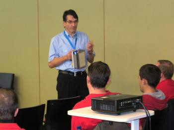 Die Ausbilder informierten über Atomaufbau, die verschiedenen Strahlenarten (alpha, beta, gamma), den Reichweiten von Strahlung, Maßeinheiten, die biologische Wirkung auf Menschen, welche Risiken von den Strahlen ausgehen, welche Schutzmaßnahmen notwendig sind und in welchen Einheiten die Strahlung gemessen wird.