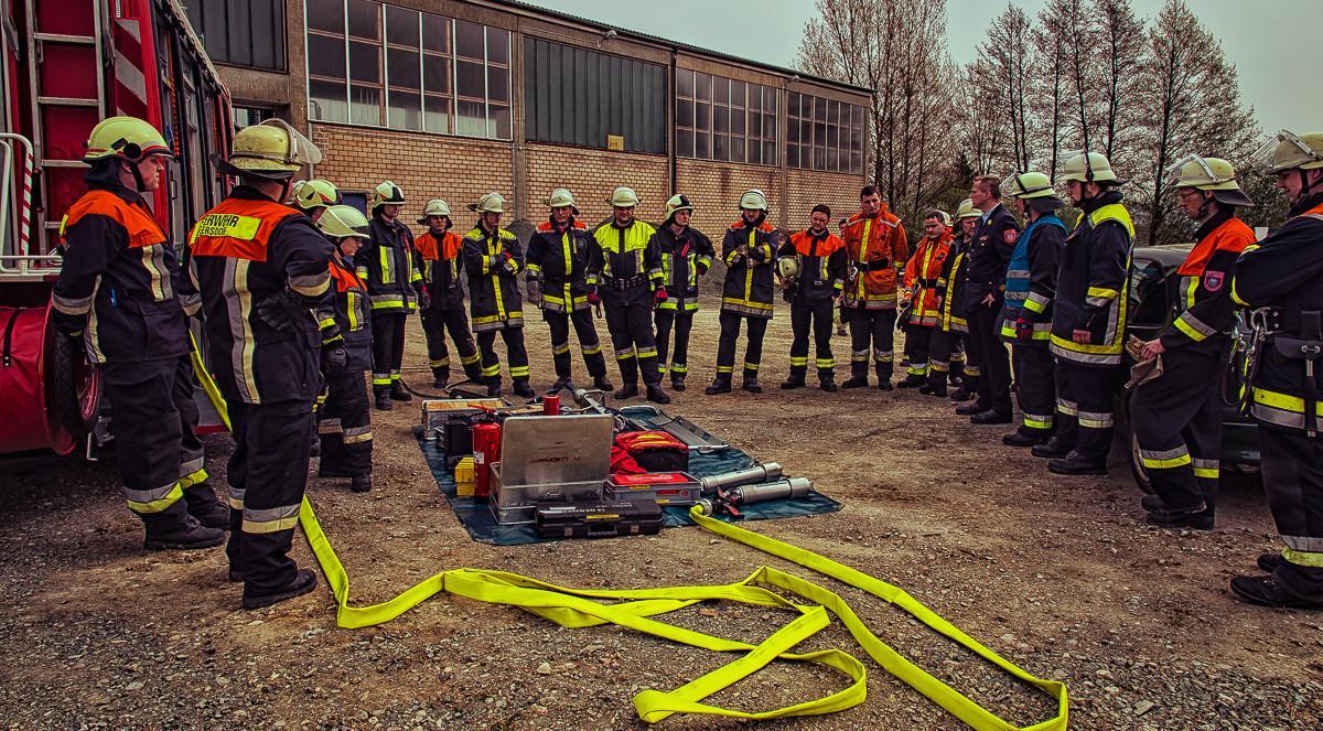 Nach der Wiederholung und Vertiefung der theoretischen Grundlagen am Vormittag wurde bei der praktischen Ausbildung auf dem Gelände des Bauhofes der Gemeinde Eckersdorf unter Beachtung der erlernten Grundsätze ein Fahrzeug Stück für Stück auseinandergenommen. Hierbei hatten die Teilnehmer vor allem Gelegenheit, sich in aller Ruhe und ohne dem im Realeinsatz zumeist herrschenden Zeitdruck ausführlich mit verschiedenen Gerätschaften, taktischen Aspekten und möglichen Lösungswegen zu beschäftigen.