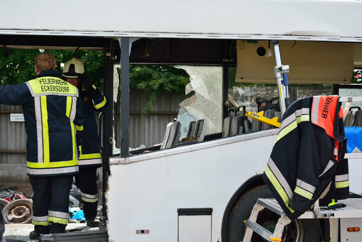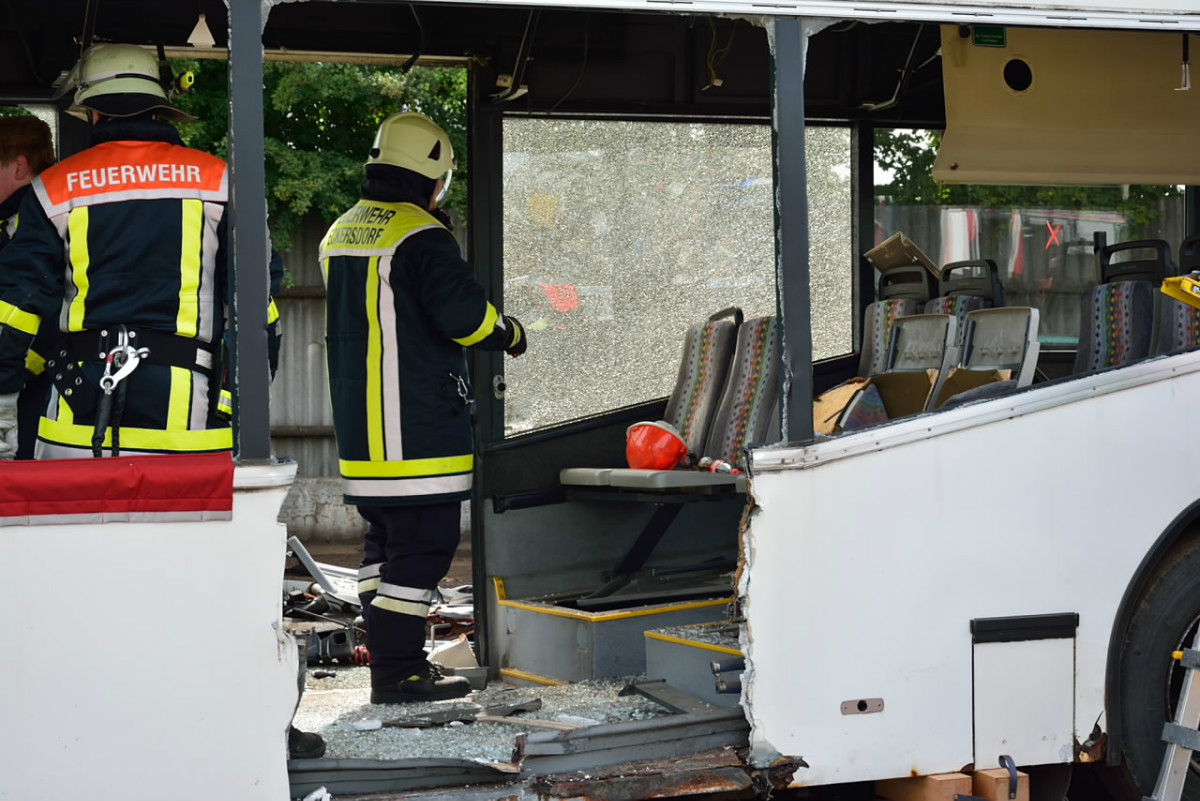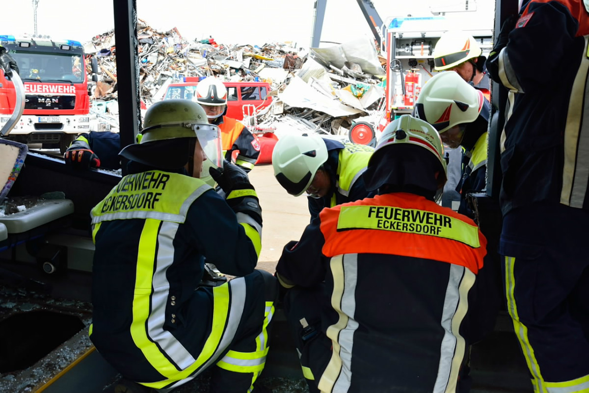 Bus zerlegt – Feuerwehren Bindlach und Eckersdorf trainieren gemeinsam