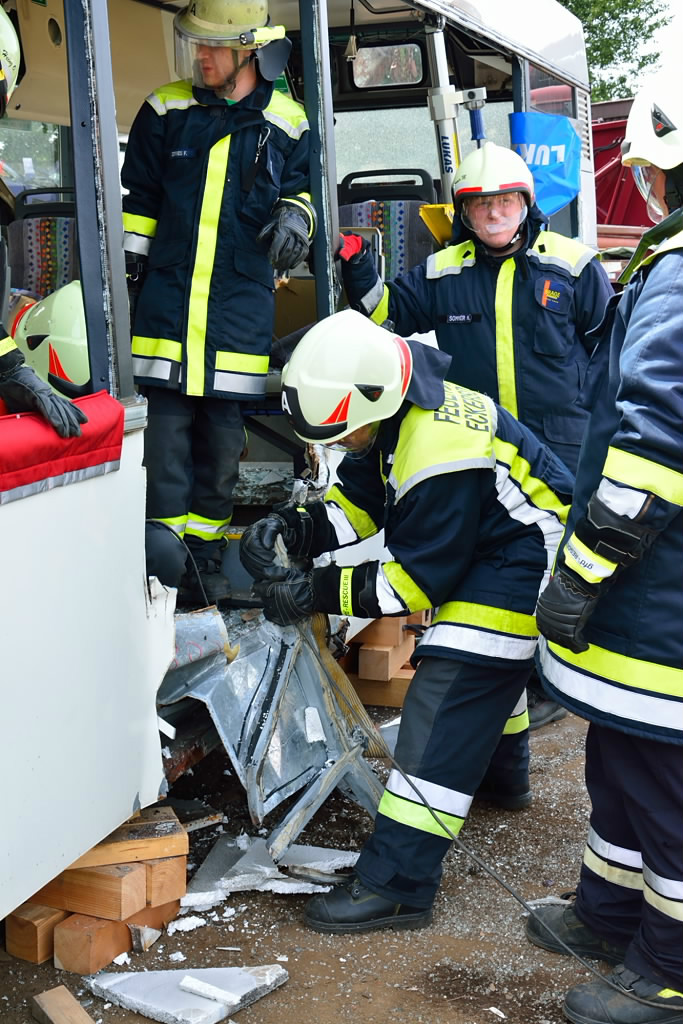 Am Samstag, den 28. Juni 2014, wurde durch die Feuerwehr Eckersdorf und deren Patenwehr Bindlach eine THL-Übung an einem ausgemusterten Bus durchgeführt.