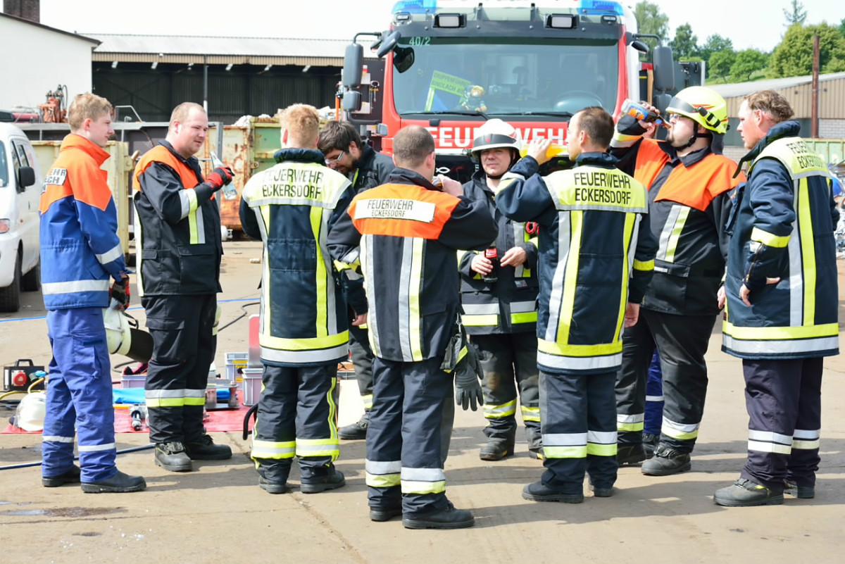 Da sich solch eine Gelegenheit selten ergibt, war die Teilnehmerzahl mit 13 Teilnehmern der Feuerwehr Eckersdorf und 10 Teilnehmern der Feurwehr Bindlach entsprechend hoch. Es wurde 4 Stunden mit aller zur Verfügung stehender technischer Ausrüstung geübt.