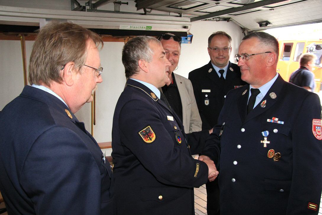 In seiner Laudatio dankte KBR Schreck dem sichtlich überraschten Kreisbrandmeister für sein langjähriges, unermüdliches Arbeiten mit und für die Jugendfeuerwehren. Die Teilnehmer und Betreuer der Veranstaltung zollten der Ehrung stürmischen Beifall.