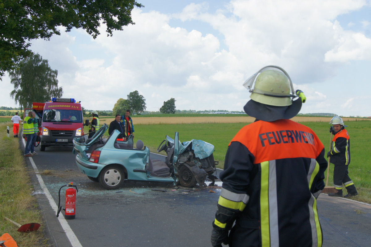 Zu einem schweren Verkehrsunfall auf der Staatsstraße 2163 zwischen Dressendorf und Goldkronach wurden am späten Vormittag des 01.07.2014 die Freiwilligen Feuerwehren Dressendorf sowie der Löschzug Goldkronach-Nemmersdorf alarmiert. Auch die Freiwillige Feuerwehr Bindlach, die sich zum Zeitpunkt der Alarmierung bei der Beseitigung einer Ölspur am Bindlacher Berg aufhielt, rückte sofort aus zur Einsatzstelle nahe Dressendorf.