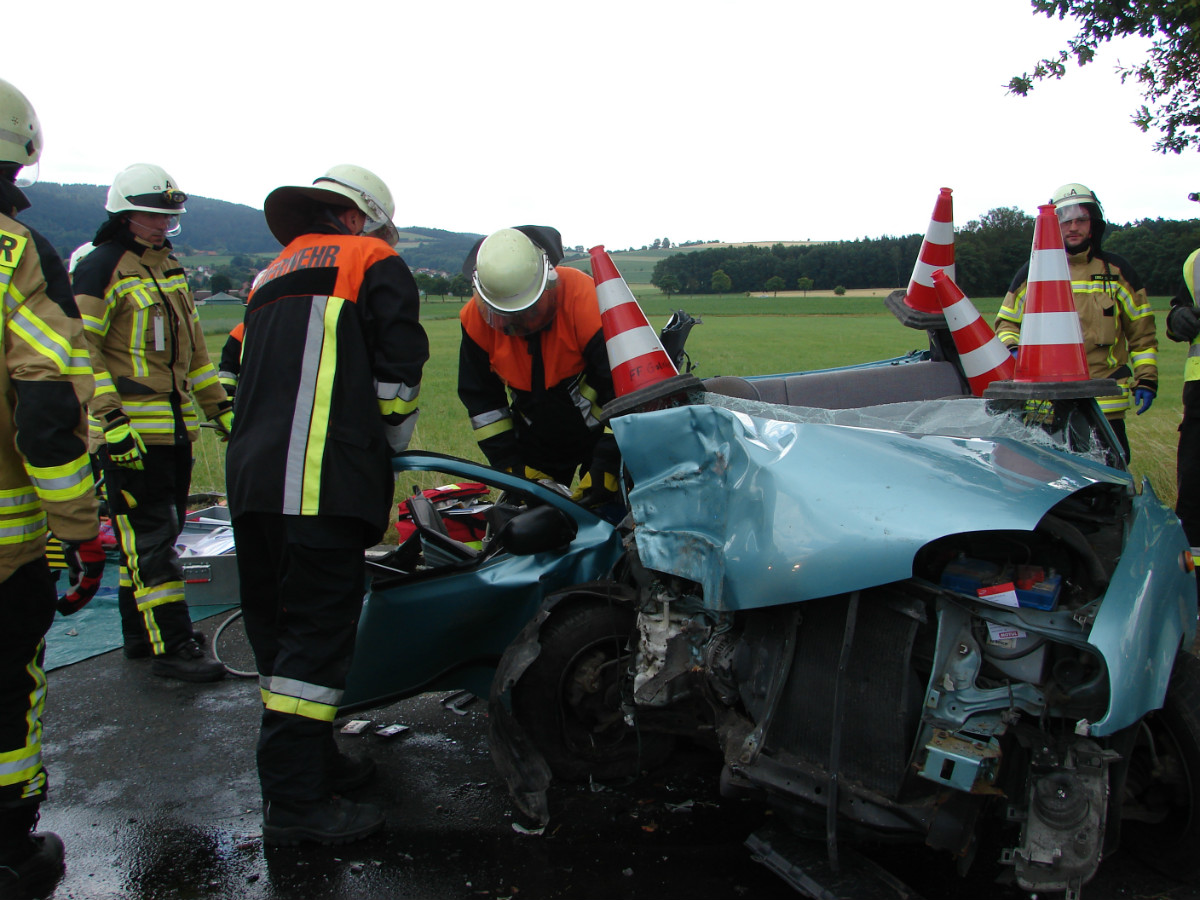Die Meldung einer nach Verkehrsunfall eingeklemmten Person bestätigte sich beim Eintreffen der ersten Rettungskräfte. Der Mann, der allein in seinem Fahrzeug in Richtung Goldkronach unterwegs war, war gegen einen Baum geprallt und wurde schwer eingeklemmt. Mit zwei Rettungssätzen wurde die verletzte Person befreit und schonend aus dem Fahrzeug gerettet.
