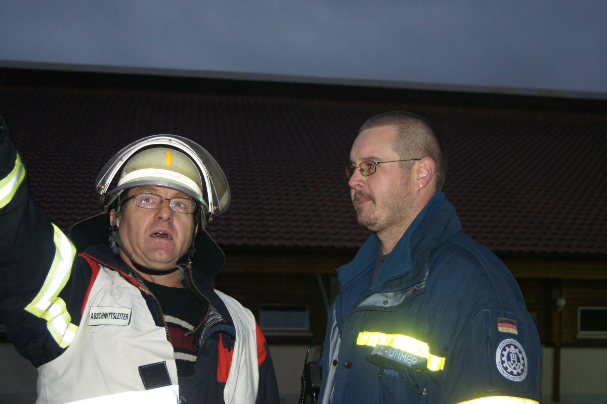 Um 18:40 Uhr wurden am Abend des 26.09.2014 die umliegenden Feuerwehren sowie der Rettungsdienst alarmiert. Über 200 Einsatzkräfte waren an der Übung beteiligt, in deren Verlauf sechs Einsatzabschnitte gebildet wurden: Menschenrettung, Brandbekämpfung, Löschwasserförderung, Bereitstellungsraum, Atemschutzüberwachung und Verkehrsregelung bzw. -Umleitung. Die Einsatzleitung hatte Seybothenreuths Kommandant Bernd Köhler. Neben zehn Löschzügen und weiteren Ortswehren war die Unterstütungsgruppe Örtliche Einsatzleitung ( UG-ÖEL ) sowie die Helfer vor Ort (HvO) Weidenberg mit Dr. Hentsch nach Fenkensees gekommen, um das Übungsszenario abzuarbeiten. Die stellvertretende Landrätin Christa Reinert-Heinz und stellvertretender Kreisbrandrat, KBI Adolf Mendel, machten sich ebenfalls vor Ort ein Bild von der Leistung der Ehrenamtlichen. Fazit: der Einsatz wurde professionell und umsichtig abgearbeitet, das Übungsziel somit erreicht. Weitere Großübungen in den Inspektionen I, II + III folgen am Samstag.