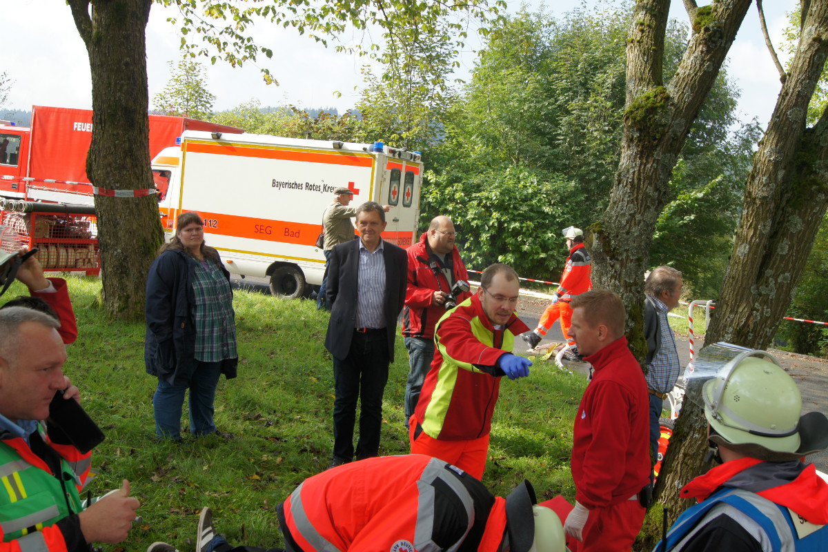Kein Wunder also, dass bei der anschließenden Manöverkritik im Bischofsgrüner Kurhaus viel Lob, aber auch kritische Worte der Übungsbeobachter ausgesprochen wurden. Doch genau das ist der Zweck von Übungen: es ist das Training von Einsatzkräften mit den zur Verfügung stehenden Einsatzmitteln unter der gedanklichen Planung, wie es im Ernstfall sein könnte. Insgesamt zogen die Verantwortlichen jedoch ein durchaus positives Resumé und das Übungsziel wurde erreicht.