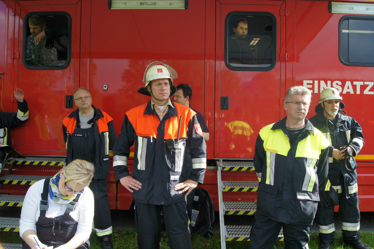 Die Einsatzleitung des angenommenen Großeinsatzes hatte Christopher Häfner inne. Ihn unterstützten Kommandant Christian Rieß, Kreisbrandmeister Uwe Meier sowie die Unterstützungsgruppe Örtliche Einsatzleitung.