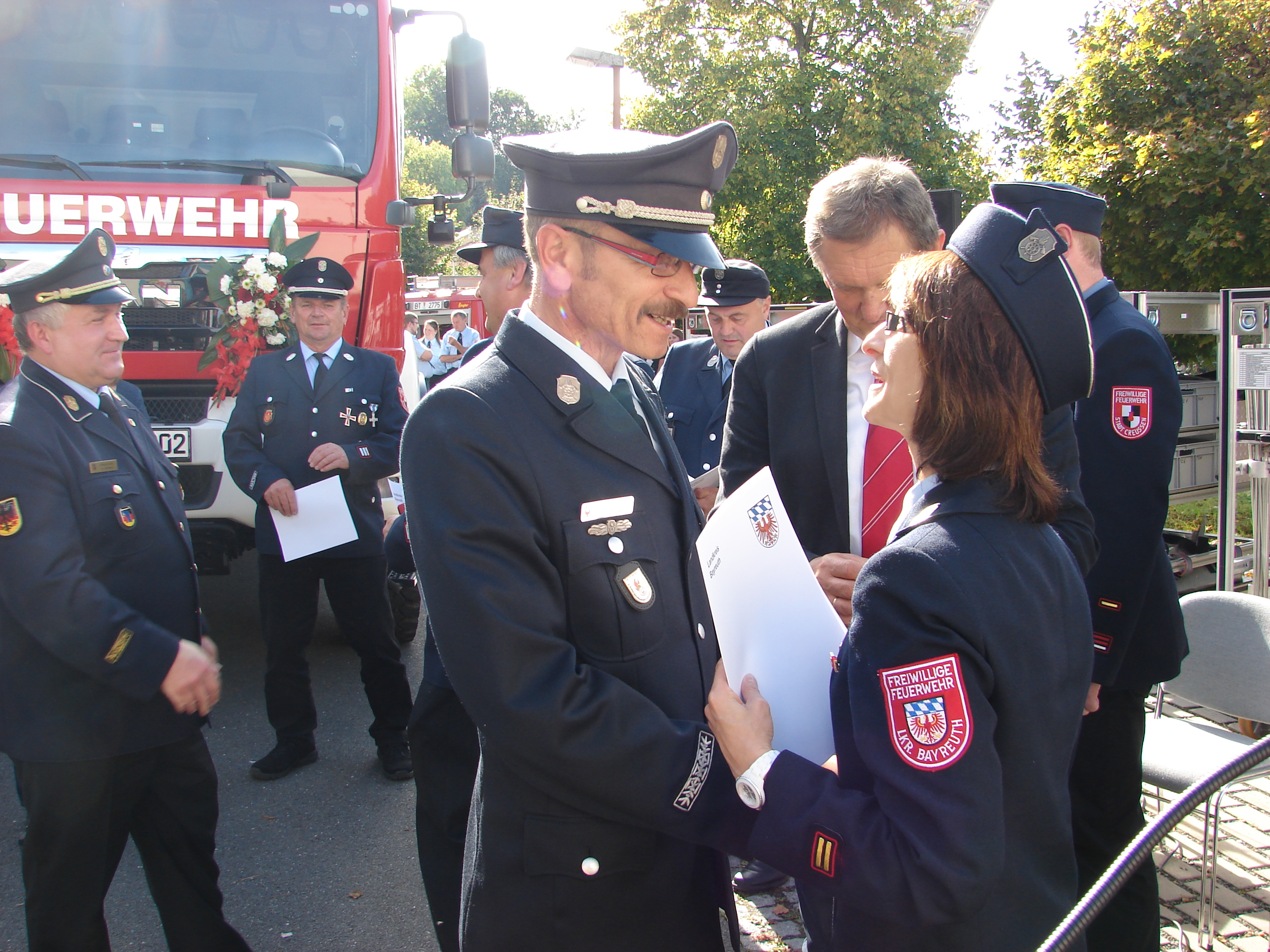Kreisbrandrat Hermann Schreck zeigte sich überzeugt, dass der Gerätewagen Dekon P bei den Kameraden in Creußen in guten Händen sei. Kompetent und schlagkräftig seien sie und bereits seit vielen Jahren hervorragender Partner nicht nur bei Umwelteinsätzen. Creußen sei ein wichtiger Katastrophenschutzstandort für den Landkreis. Das neue Fahrzeug bedeute nicht nur viel Arbeit, sondern müsse auch beherrscht werden, so Schreck in seinem Grußwort.