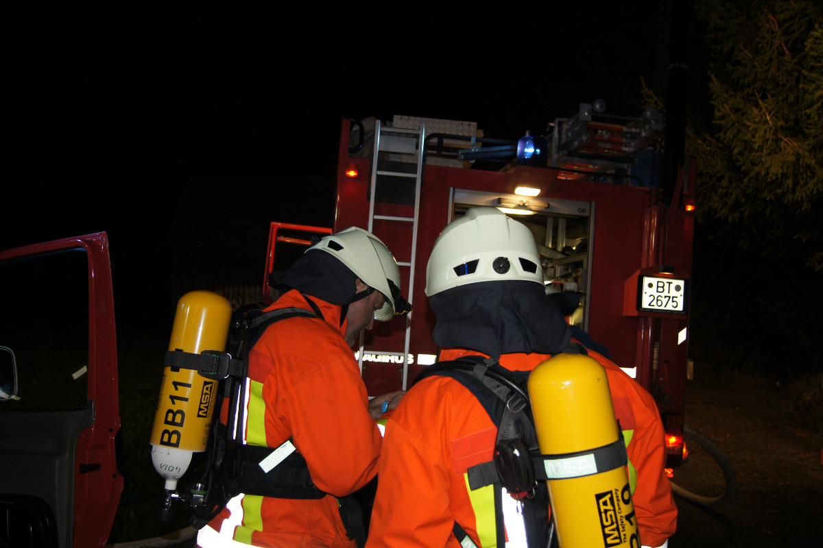 Ein gemeldeter Scheunenbrand hat in den frühen Morgenstunden des 22.10.2014 die Freiwilligen Feuerwehren rund um Goldkronach auf den Plan gerufen. Gegen 4.25 Uhr alarmierte die Integrierte Leitstelle Bayreuth-Kulmbach unter dem Alarmstichwort „B4 Brand Scheune“. Ein dementsprechend großes Aufgebot an Einsatzkräften rückte sofort an. Beim Eintreffen der ersten Kräfte stellte sich heraus, dass eine im unmittelbaren Umfeld der Scheune aufgebaute Holzlege im Vollbrand stand. Auch einige Bäume wurden in Mitleidenschaft gezogen. Unter schwerem Atemschutz gelang es den Angriffstrupps rasch, den Brand unter Kontrolle zu bringen. Ein Übergreifen auf die Scheune konnte verhindert werden. Durch Abtragen und Ablöschen des Brandguts wurde das Feuer schließlich komplett gelöscht und mittels Wärmebildkamera nach Glutnestern gesucht. Im Einsatz waren rund 100 Kräfte von Feuerwehr, Rettungsdienst und Polizei.