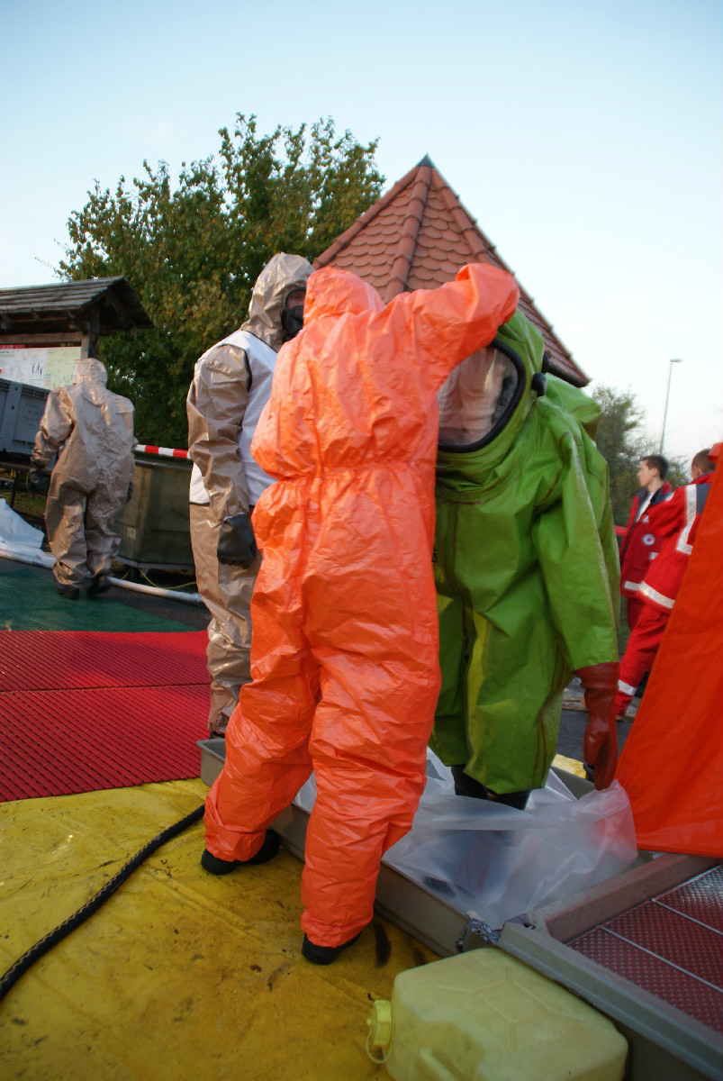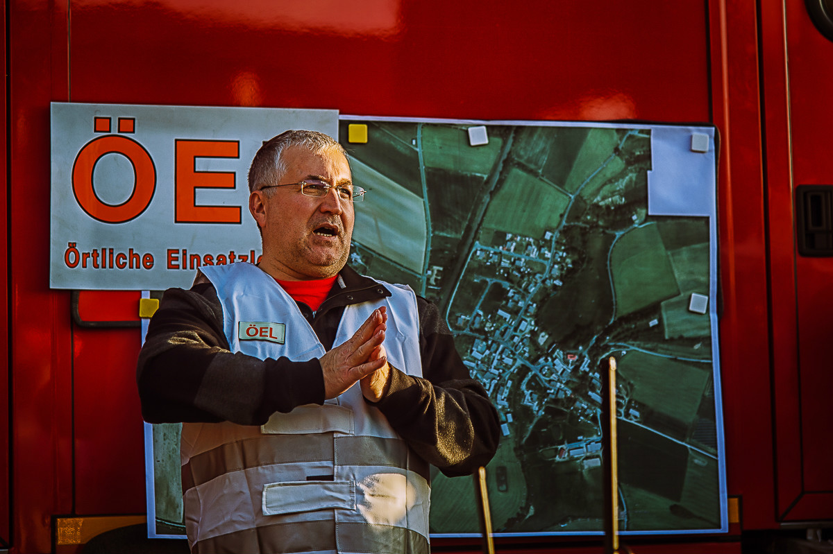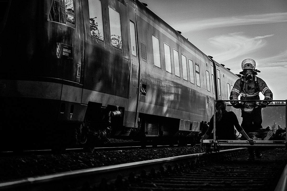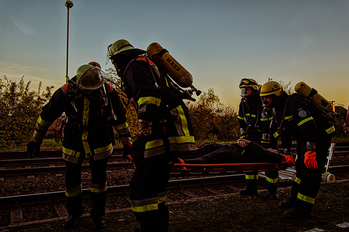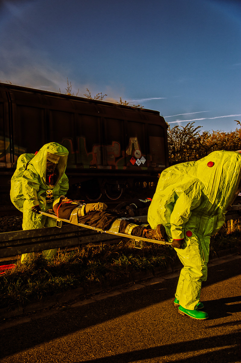 Der „Super-Gau 2014“ stellte die Einsatzkräfte von Feuerwehr, Rettungsdienst, Technischem Hilfswerk und die Verantwortlichen der Deutschen Bahn vor große Herausforderungen. Aber auch die Führungsgruppe Katastrophenschutz (FüGK), die Unterstützungsgruppen sowie die Fachberater aller Organisationen mussten bei der Katastrophenschutzvollübung des Landkreises Bayreuth am Nachmittag des 01.11.2014 den Ernstfall proben. Angenommen wurde ein Schadensszenario, bei dem von der Kollision eines Personenzugs mit einem Güterzug im Bereich der Ortschaft Haidenaab-Göppmannsbühl ausgegangen wurde. Der Notruf erreichte die Integrierte Leitstelle kurz vor 14 Uhr, um 13.55 Uhr wurden die ersten Kräfte alarmiert. Eine Vielzahl von Verletzten wurden ins Spiel gebracht, der Güterzug war zudem mit giftigen Stoffen beladen, welche nach der Kollision austraten. Es galt, sowohl Einsatzkräfte wie auch die Bevölkerung vor den austretenden Stoffen zu schützen. Immer wieder neue Anforderungen wurden an die Führungsgruppe Katastrophenschutz ins Landratsamt Bayreuth übermittelt, auch die Einsatzkräfte vor Ort trainierten so realitätsgetreu wie möglich. Vor allem dem Bereich Atem- und Chemieschutz sowie der Versorgung eines Masseanfalls von Verletzten wurde große Aufmerksamkeit gewidmet.