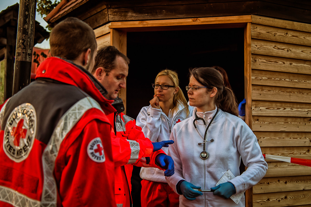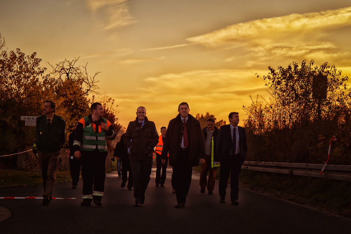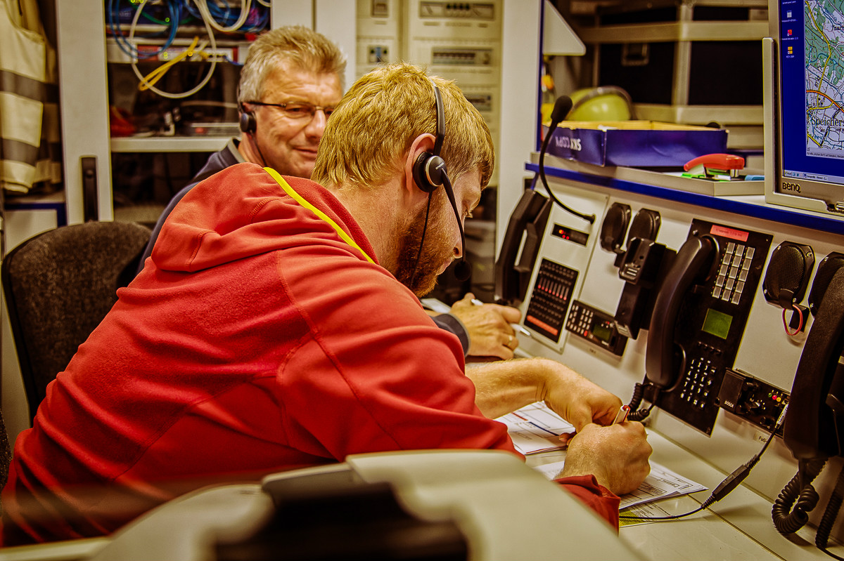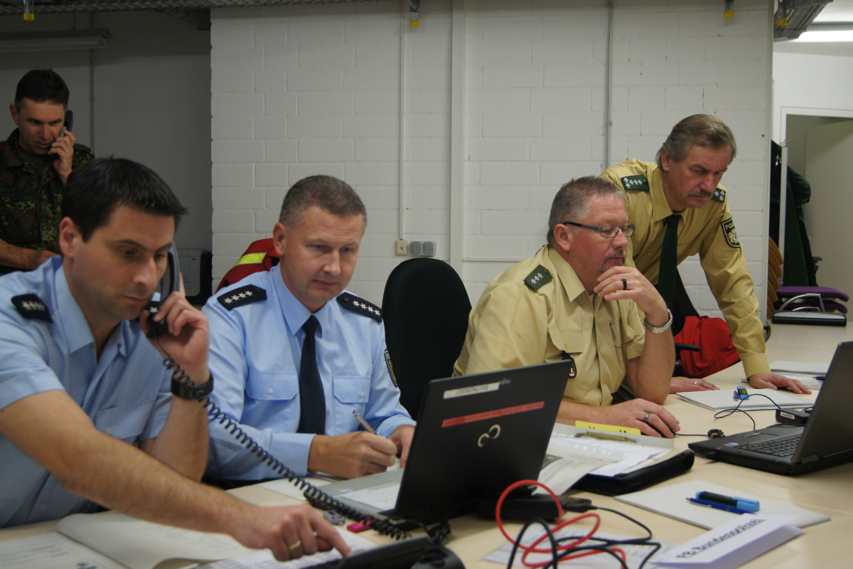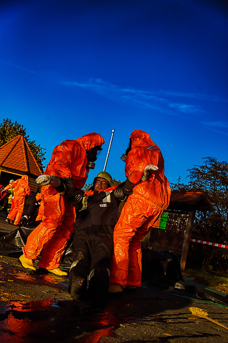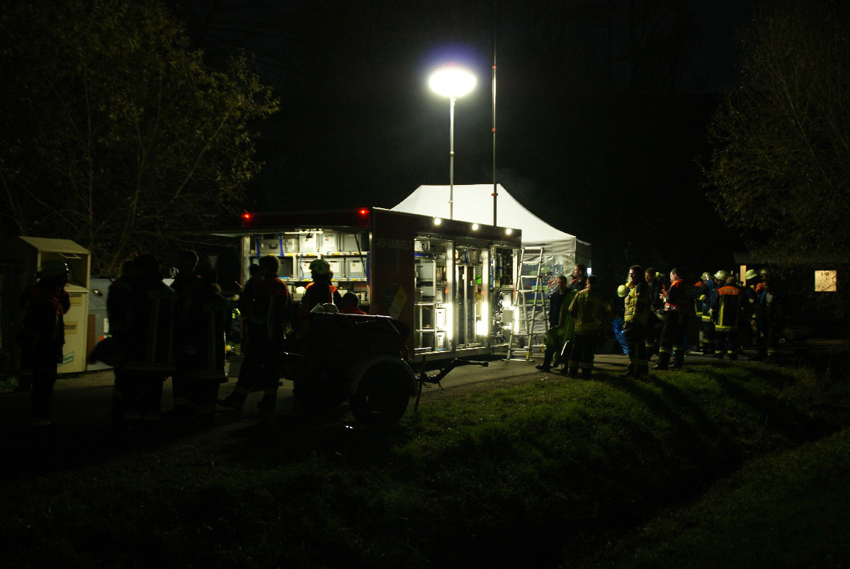 Der „Super-Gau 2014“ stellte die Einsatzkräfte von Feuerwehr, Rettungsdienst, Technischem Hilfswerk und die Verantwortlichen der Deutschen Bahn vor große Herausforderungen. Aber auch die Führungsgruppe Katastrophenschutz (FüGK), die Unterstützungsgruppen sowie die Fachberater aller Organisationen mussten bei der Katastrophenschutzvollübung des Landkreises Bayreuth am Nachmittag des 01.11.2014 den Ernstfall proben. Angenommen wurde ein Schadensszenario, bei dem von der Kollision eines Personenzugs mit einem Güterzug im Bereich der Ortschaft Haidenaab-Göppmannsbühl ausgegangen wurde. Der Notruf erreichte die Integrierte Leitstelle kurz vor 14 Uhr, um 13.55 Uhr wurden die ersten Kräfte alarmiert. Eine Vielzahl von Verletzten wurden ins Spiel gebracht, der Güterzug war zudem mit giftigen Stoffen beladen, welche nach der Kollision austraten. Es galt, sowohl Einsatzkräfte wie auch die Bevölkerung vor den austretenden Stoffen zu schützen. Immer wieder neue Anforderungen wurden an die Führungsgruppe Katastrophenschutz ins Landratsamt Bayreuth übermittelt, auch die Einsatzkräfte vor Ort trainierten so realitätsgetreu wie möglich. Vor allem dem Bereich Atem- und Chemieschutz sowie der Versorgung eines Masseanfalls von Verletzten wurde große Aufmerksamkeit gewidmet.