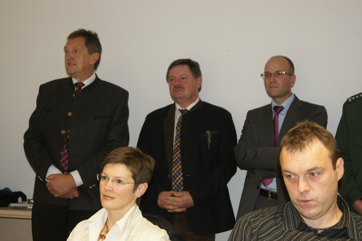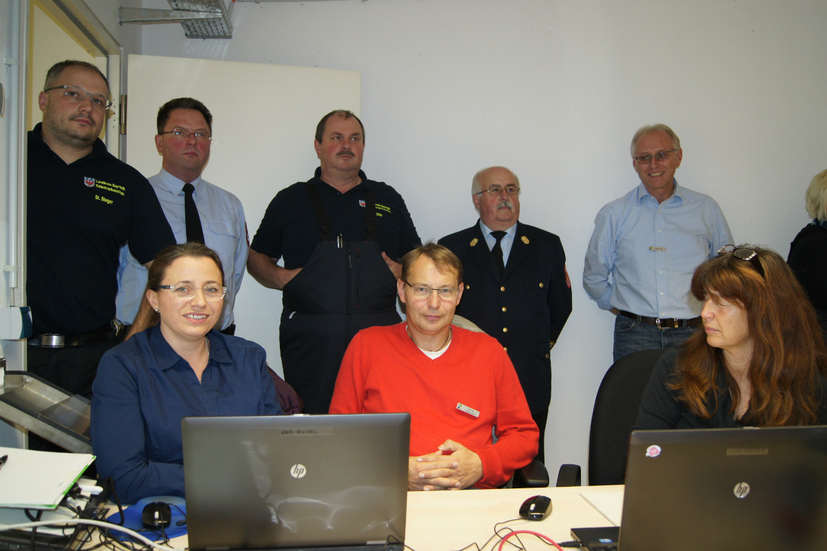 Landrat Hermann Hübner machte sich vor Ort ein Bild von der Lage. Ebenso eigens ins Katastrophenschutzzentrum im Landratsamt Bayreuth angereist war Staatssekretär Gerhard Eck, der allen an der K-Übung Beteiligten Dank und Anerkennung für ihr Engagement zollte.