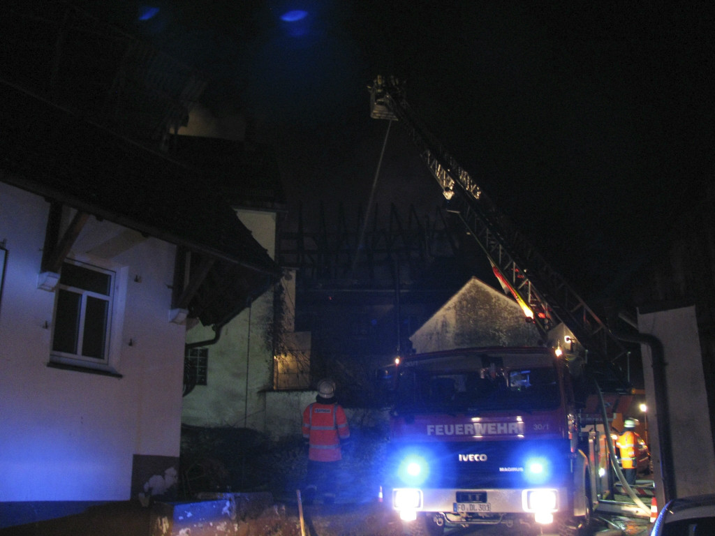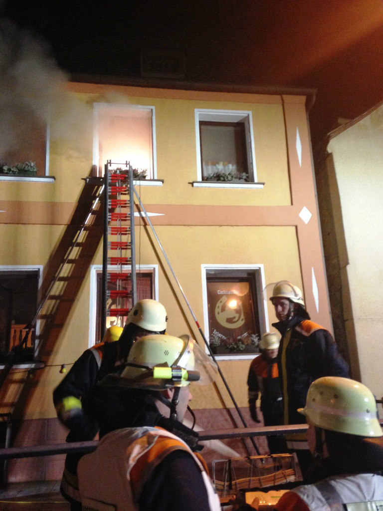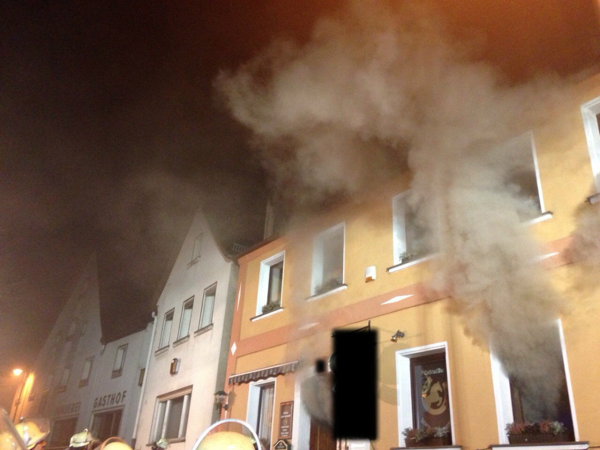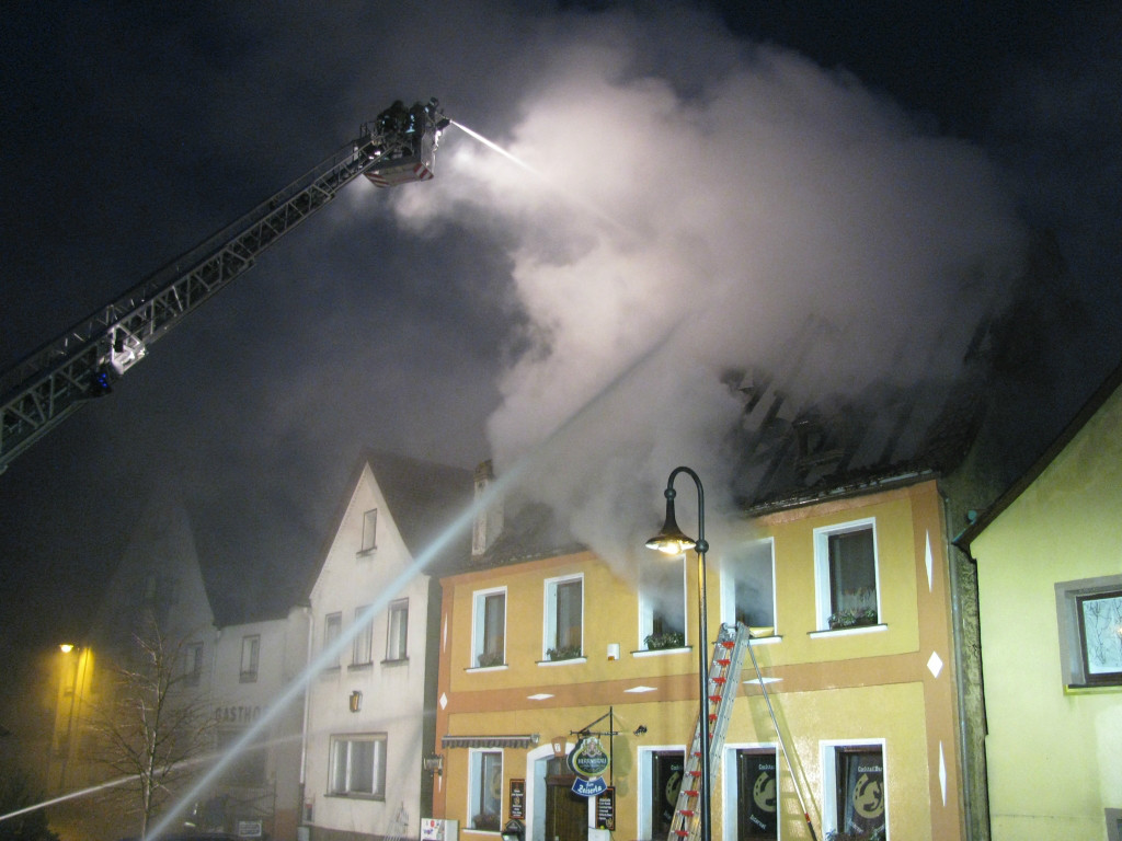 Anwohner teilten der Rettungsleitstelle, gegen 3.40 Uhr, Feuer und starke Rauchentwicklung in dem Gebäude, in dem sich im Erdgeschoss auch eine Gaststätte befindet, mit. Den Bewohnern gelang es noch rechtzeitig, sich über den Hinterausgang des Anwesens in Sicherheit zu bringen. Schnell kamen die alarmierten Einsatzkräfte vor Ort. Trotz aller Bemühungen konnten die Feuerwehren nicht verhindern, dass sich in den folgenden Stunden die Flammen im Erdgeschoss über die Zwischenböden bis zum Dachstuhl ausbreiteten. Zeitweise kämpften zirka 170 Feuerwehreinsatzkräfte gegen die Flammen. Auch ein dicht neben dem brennenden Gebäude befindliches Haus wurde insbesondere durch die starke Hitzeentwicklung in Mitleidenschaft gezogen.