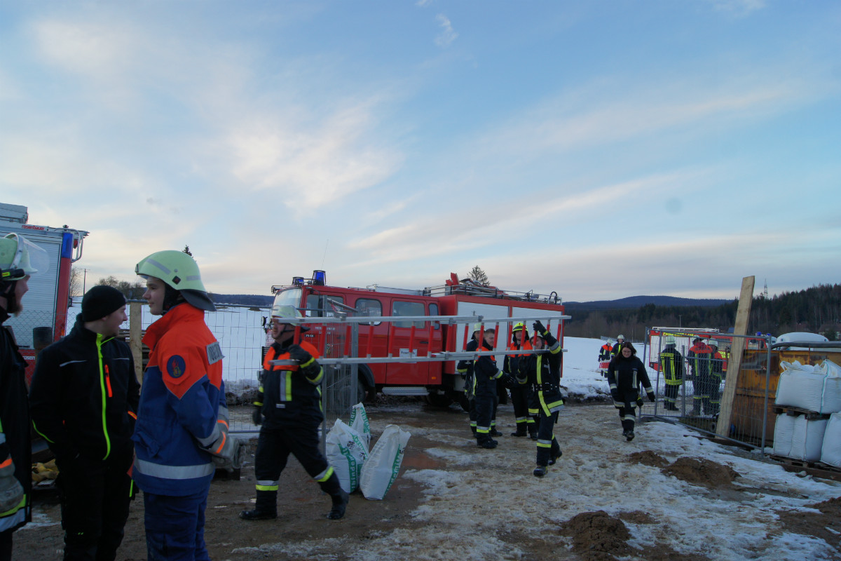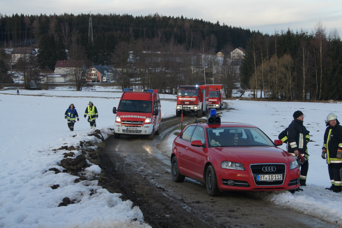 Ein außergewöhnlicher und äußerst zeitaufwändiger Einsatz beschäftigt seit dem späten Nachmittag des 02. März 2015 die Freiwilligen Feuerwehren Unterlind und Mehlmeisel. Alarmiert wurden die Helfer zu einer Baustelle am Tiefbrunnen nahe Mehlmeisel. Bei Bohrarbeiten war an einem Tiefenbohrer ein Hydraulikschlauch geplatzt, rund 100 Liter Hydrauliköl verschmutzten das umliegende Areal. Sofort wurde auf die Oberflächen Ölbindemittel gestreut, um ein weiteres Verbreiten und Versickern im aufgeweichten Erdreich zu verhindern. Der Ölschadenanhänger aus dem benachbarten Landkreis Tirschenreuth, stationiert bei der Feuerwehr Kemnath, wurde hinzualarmiert, konnte jedoch nach kurzer Zeit wieder abrücken.