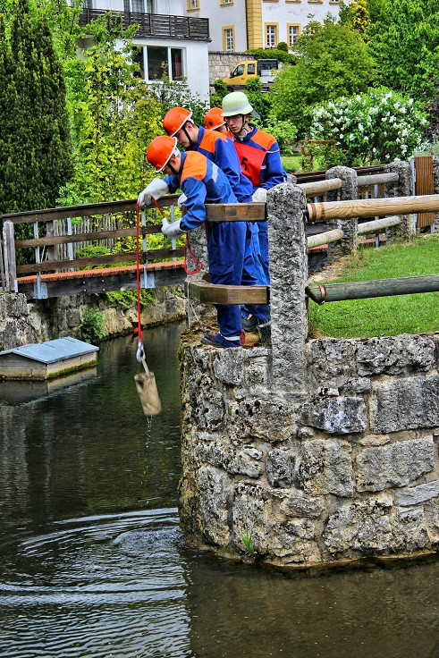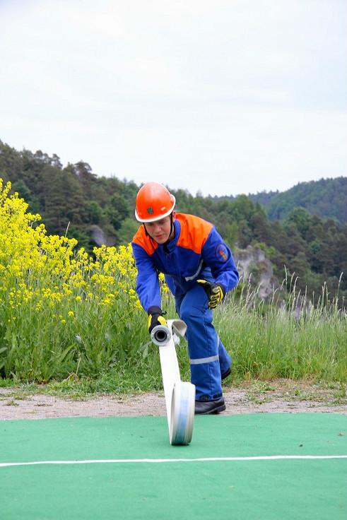 Der Weg führte die Teilnehmer in und um Pottenstein. Neben den Prüfungen an den Stationen war hierbei gute Kondition gefragt. Etwa 150 Metern Höhenunterschied galt es zu bewältigen. Viele Touristen blieben oftmals an den Stationen stehen und verfolgten mit großem Interesse die Übungen. Trotz des anspruchsvollen Rundkurses erreichten alle Gruppen bei bester Gesundheit und Laune am Nachmittag wieder das Feuerwehrhaus in Pottenstein.