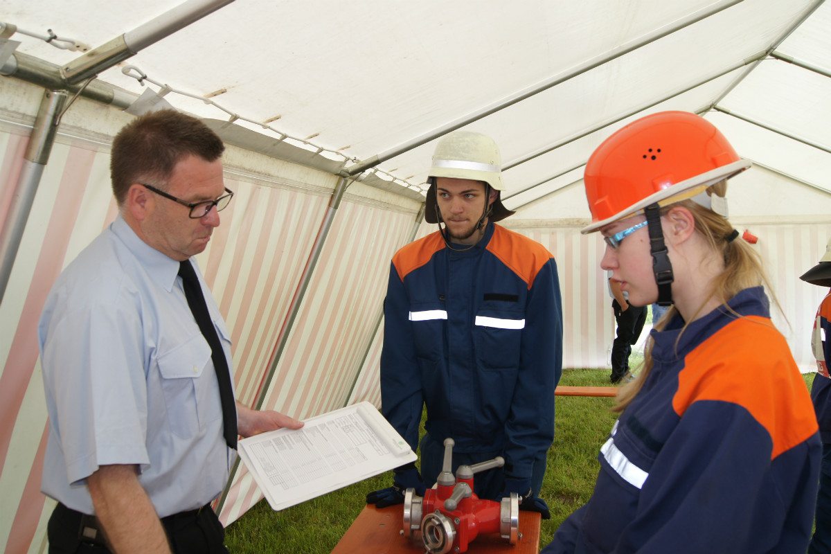 Mit einem schönen Mix aus inner- und außerörtlichen Stationen gingen die 17 Staffeln, darunter drei aus dem benachbarten Landkreis Hof ( Marktschorgast, Stammbach und Zell ) auf die Strecke. Neben Erster Hilfe, Knoten und Stichen, Löschangriff, Gerätetransport, einer theoretischen Prüfung sowie dem Zuordnen von Gefahrengut- und Hinweiszeichen, galt es, bei einer Überraschungsübung Geschicklichkeit und Können zu beweisen.